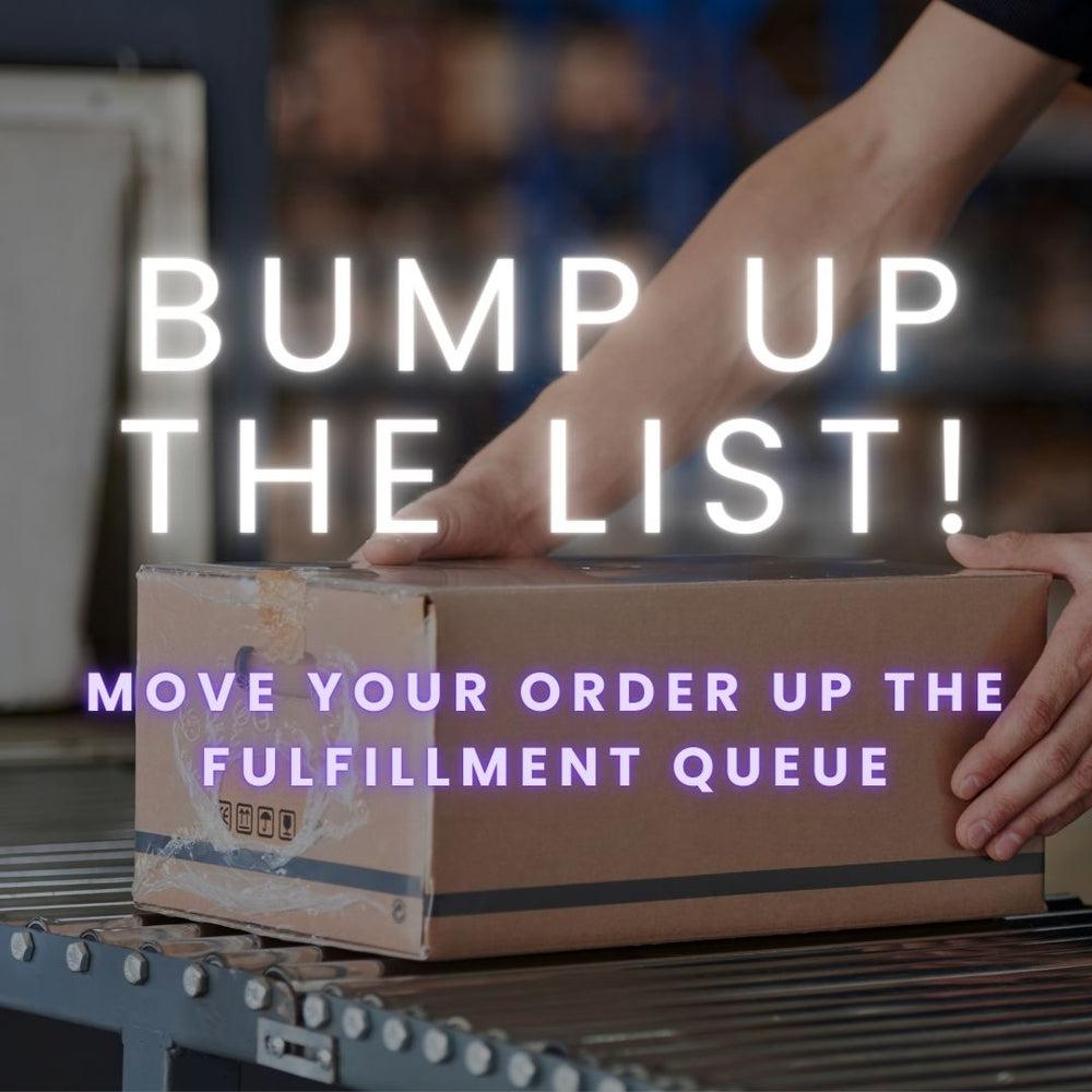 In case you need your order to arrive sooner, you have the option to Bump Your Order Up the List! Pay an additional $10, and we will bump your order up the queue.