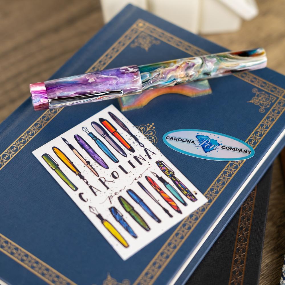 This exclusive 2026 release arrives with everything you need to showcase your new pen. You'll get authentic Carolina Pen Company stickers, a custom 3D printed pen rest designed to cradle your fountain pen, and a coordinating Rickshaw Bagworks sleeve for stylish protection on the go.