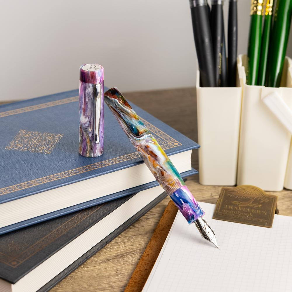 For the first time ever, we’re thrilled to bring a Carolina Pen Company fountain pen to a retailer! The Charlotte fountain pen is making its retail debut in a bold, brand new Primary Manipulation 6 resin.