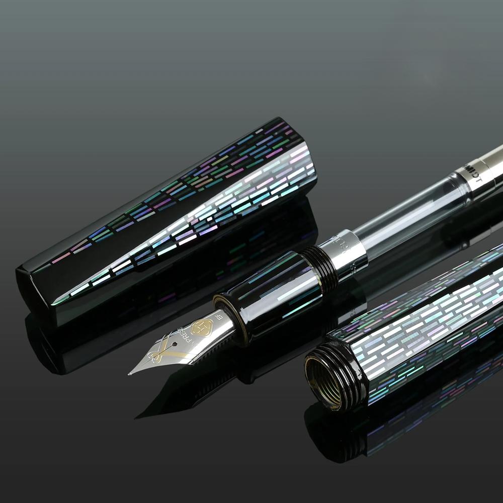 The CYPRESS Diamond Cut-Hexagon-MR001 features a sleek, polygonal barrel that exudes refined precision. Each facet aligns flawlessly with the cap, showcasing exceptional craftsmanship that redefines conventional fountain pen design. Adorned with Raden, a rare Chinese art of inlaying finely sliced shells into intricate patterns, this pen blends timeless tradition with modern elegance, elevating it to a truly functional masterpiece.