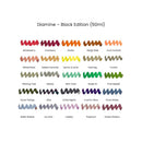 Diamine Black Edition is composed of standard, scented, shimmer, chameleon, starbright and sheen inks.