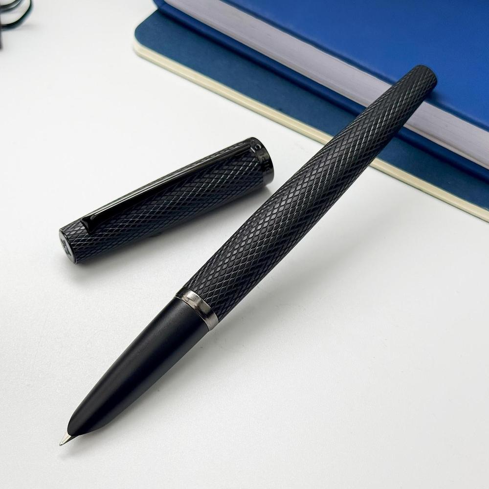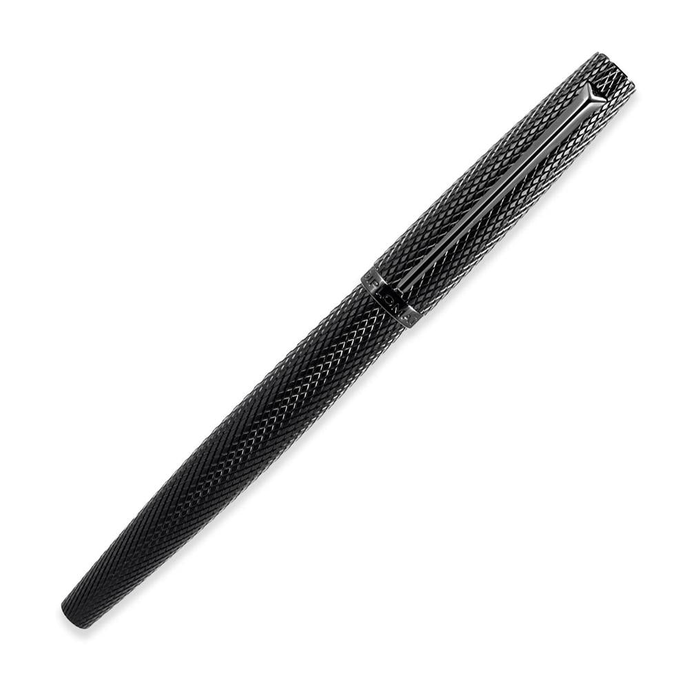 The Diplomat Viper in Noir boasts a sleek black guilloché aluminum body with a snake scale pattern. Its smooth grip and precise nib ensure effortless writing. With a magnetic closure and versatile ink options, it suits all users seeking elegance and quality in a fountain pen.
