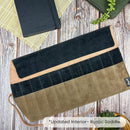 Designed with versatility in mind, the Girologio 10 Pen Roll features both large and small pen slots, accommodating virtually any pen size with ease. Whether you're carrying short pocket pen-style writing instruments or robust fountain pens, this roll keeps them securely in place. The pen roll fits everything from Kaweco Lilliput to the Namaiki Emperor.
