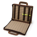 The Girologio 96 Slot Zipper Pen Case accommodates 96 individual pens, with 24 pens per panel divided for protection. It comes complete with retractable, briefcase-style handles and is available in a variety of colors, including Black, Antique Brown, Oxblood, Saddle Tan, Bomber Brown, and Cotton Denim.