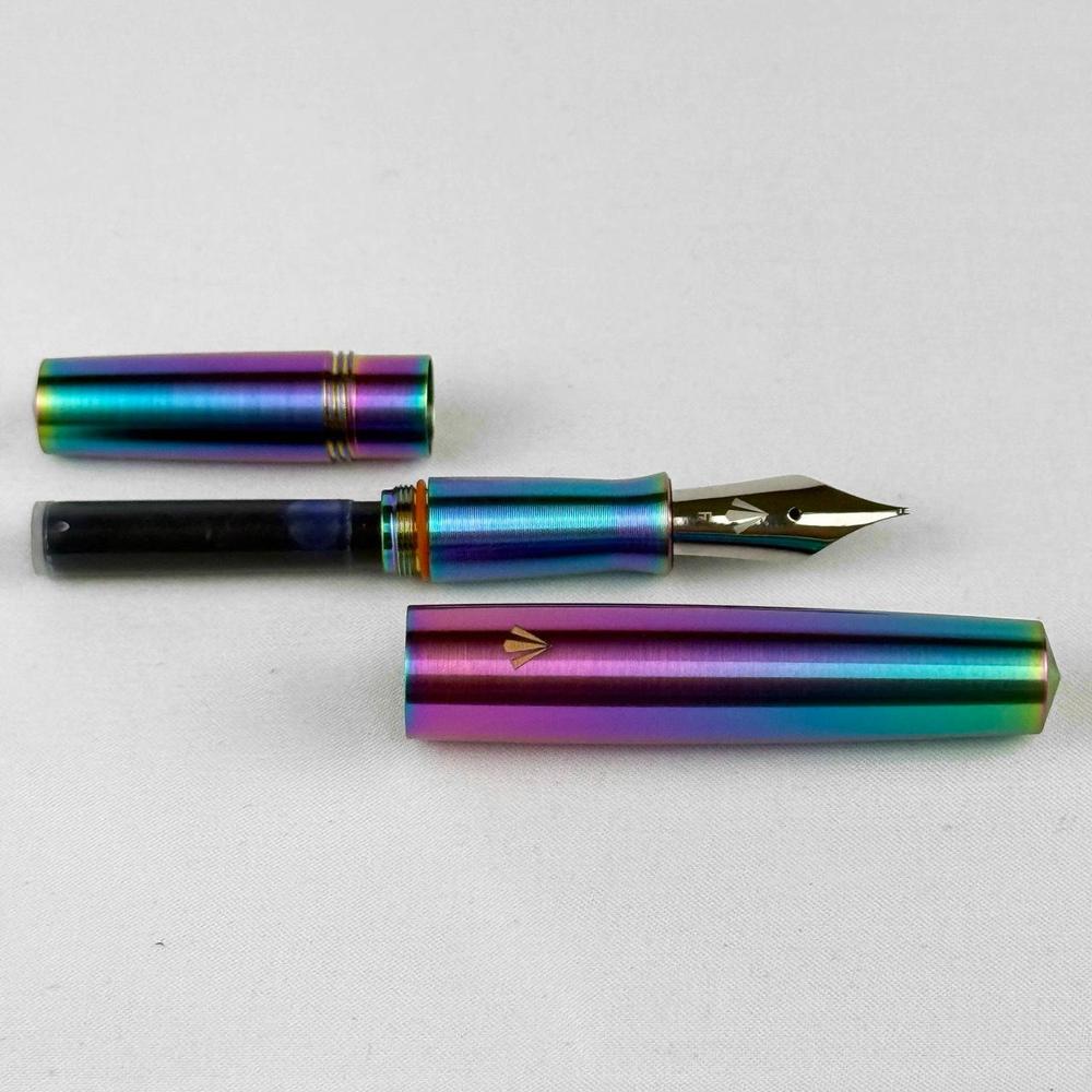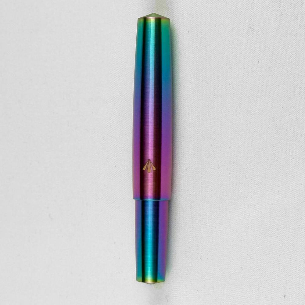 Its inner cap is lined with a Delrin insert to prevent scratches when posting, while the section is also made from stainless steel, featuring an o-ring at the threading point with the barrel. It is designed to accommodate small Standard International ink cartridges.