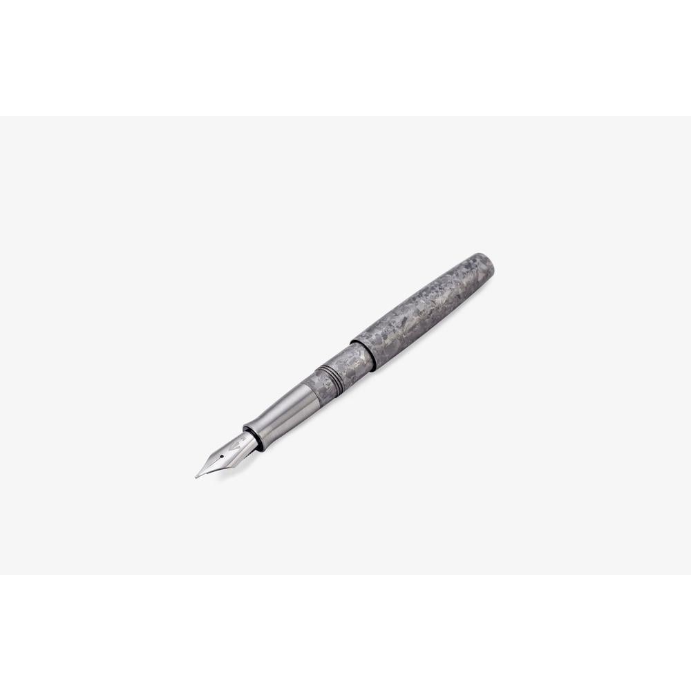 The fountain pen is small, portable, and handy, placing emphasis on the material from which it is made. It showcases a unique range of materials that, up until now, have not been offered in the Gravitas lineup. The Crystallized titanium* used for the Dinkey is obtained with time, pressure and heat, this process makes it into a material with a totally random and unique visible pattern and a satin texture, a ultra light and strong premium material that is anticorrosive and mold/bacteria resistant with a premium price to match its properties.