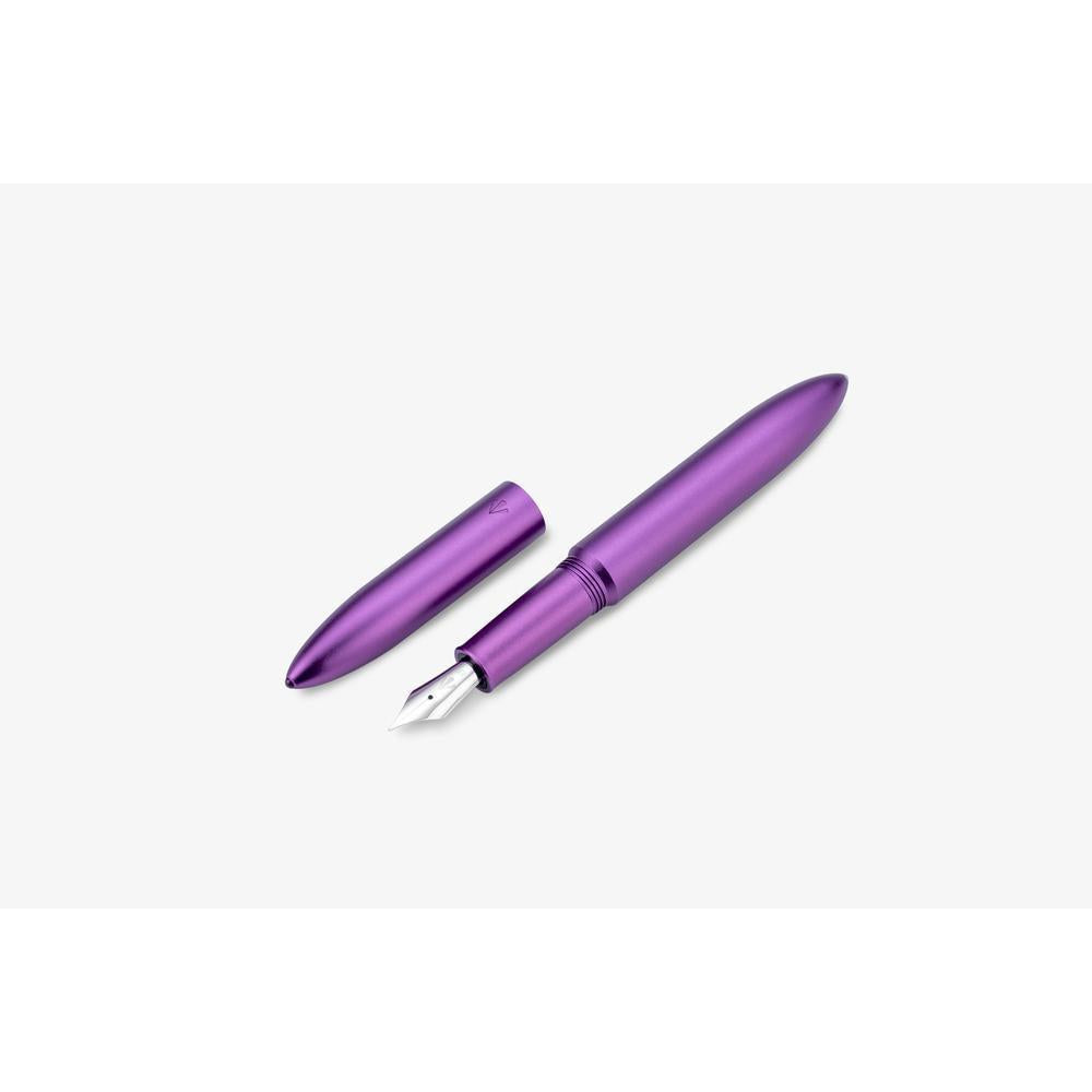 Machined entirely (cap/section/barrel) from a solid block of aluminum and anodized in a variety of colors with a unique bead blasted surface texture. The top and end finials feature silicon nitride, providing an extra layer of protection when needed. The fountain pen is equipped with a Jowo-compatible* Gravitas nib, available in extra fine, fine, medium and broad. Each Flagship pen comes provided with a push-in standard international cartridge converter.