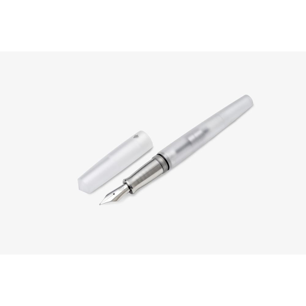 Machined from a solid rod of Polycarbonate, known for its strength and durability, this material can withstand significant impact without cracking or breaking. Despite its strength, polycarbonate is lightweight compared to materials and heat resistant. With a satin/frosted texture it shows the inner works of the Sentry and when is converted to an eyedropper shows the ink color in a unique way.
