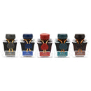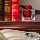 To celebrate the 340th anniversary of the founding of Herbin, we introduced a new color, "Rouge Hematite," specially made for this event. With a dark red color and earthy tone, Rouge Hematite ink is a reminder of the historic color of the Herbin logo and the sealing wax used by members of the royal courts. The sealing wax on the bottle is reminiscent of the Herbin wax used for the "grand cru" wines of France. The design on the box represents the life of Herbin. The ship, anchor, and palm tree represent navigation and discovery. The crown is a reference to the red sealing wax used by the royal court.