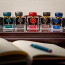 Herbin is said to have kept an emerald in his pocket during his voyages as a good luck charm. These precious gemstones have been treasured for centuries for having magical healing properties and as protective talismans. One of the purest emerald deposits in the world, the Chivor mine in the Andes was discovered in the middle of the 16th century by Spanish conquistadors. Chivor emeralds were much in demand, and the royalty of India, Persia, and Turkey sought the New World treasures once the gems arrived in Europe. Emeralds were enormously popular in the Mughal Court of India, whose rulers referred to them as "Tears of the Moon" because of their opaque transparency. Emeraude de Chivor is an elegant emerald green ink with flecks of gold.