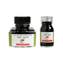 Vert olive (Green olive): the color refers to the olive tree, a Mediterranean tree which provides olive oil. In France, the olive tree is a symbol of the summer holidays, the cicadas and the popular novels of that region from the renowned writer Marcel Pagnol. This distinctive J. Herbin ink captures the verdant essence of olive groves with its muted, sophisticated green hue. The formulation offers excellent flow characteristics and moderate drying time, making it suitable for both everyday writing and artistic calligraphy. Available in both 10ml and 30ml bottles, this ink represents J. Herbin's centuries-old commitment to quality, dating back to 1670 when the company first began producing sealing wax and inks for Louis XIV's court.