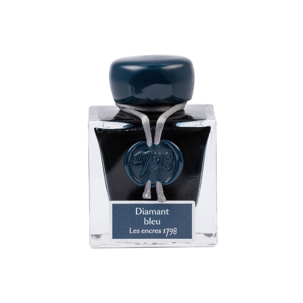 The distinguished 1798 ink series honors the year Jacques Herbin launched his signature ink collection, marking a pivotal moment in the brand's three-century legacy. Renowned for its richly saturated shades and exceptional responsiveness, each 1798 ink is enhanced with delicate silver flecks, lending a refined sheen. Diamant Bleu captivates with its deep, enigmatic blue, subtly sparkling with silver highlights. Inspired by the rare Indian blue diamond, this ink embodies a sophisticated charm reminiscent of serene summer nights.