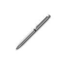 Extremely slim and elegant cylindric writing instrument with spring-loaded strip-steel clip. 3 in 1. Twist-action mechanism. Matt stainless steel. With refill LAMY M 21 black and red. Pencil lead LAMY M 41 (0.5). Eraser LAMY Z 15.