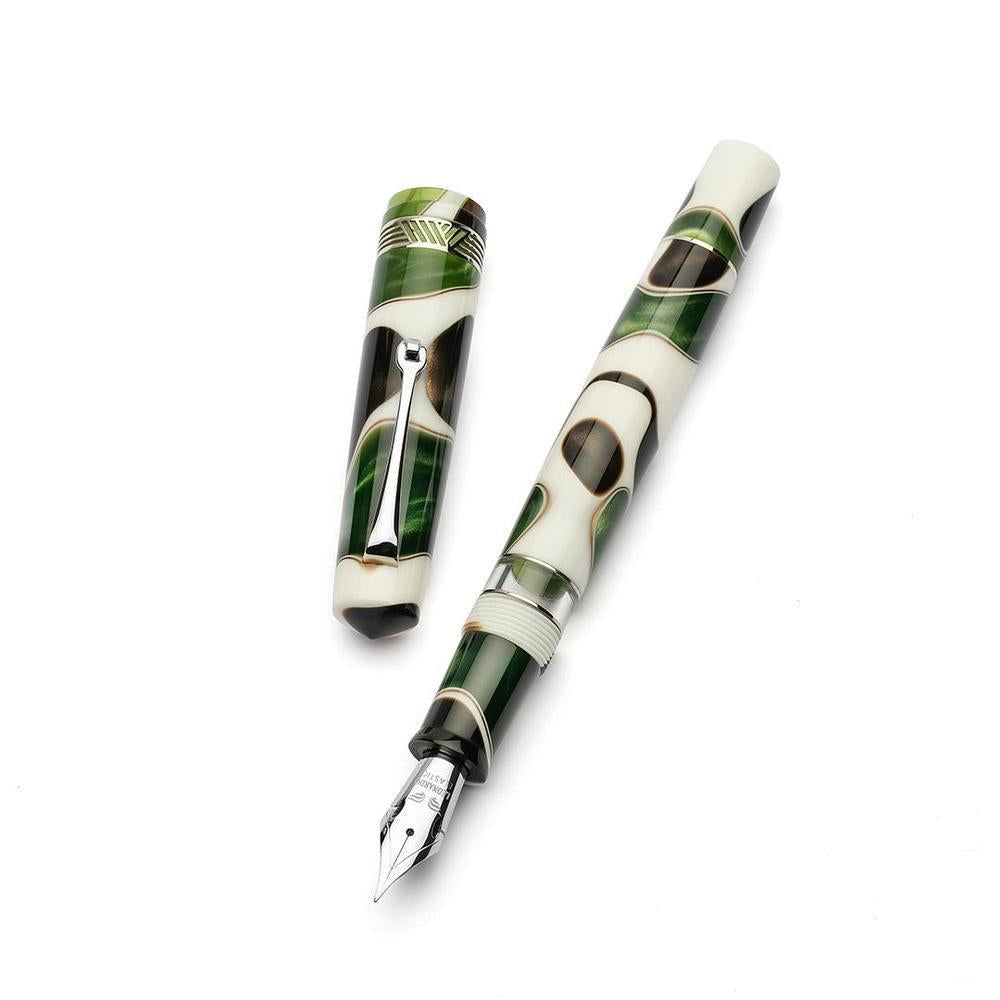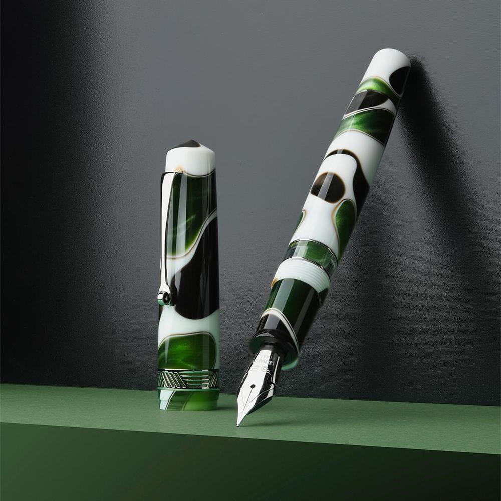 Drawing inspiration from nature’s flowing waves and leaf shapes, Foglia features a leafy green shade that beautifully complements the warm brown tones of tree branches. A transparent window on the pen body allows for easy monitoring of ink levels. The pen’s integrated piston filling mechanism, crafted entirely in Leonardo’s workshops, holds up to 1.5ml of ink.