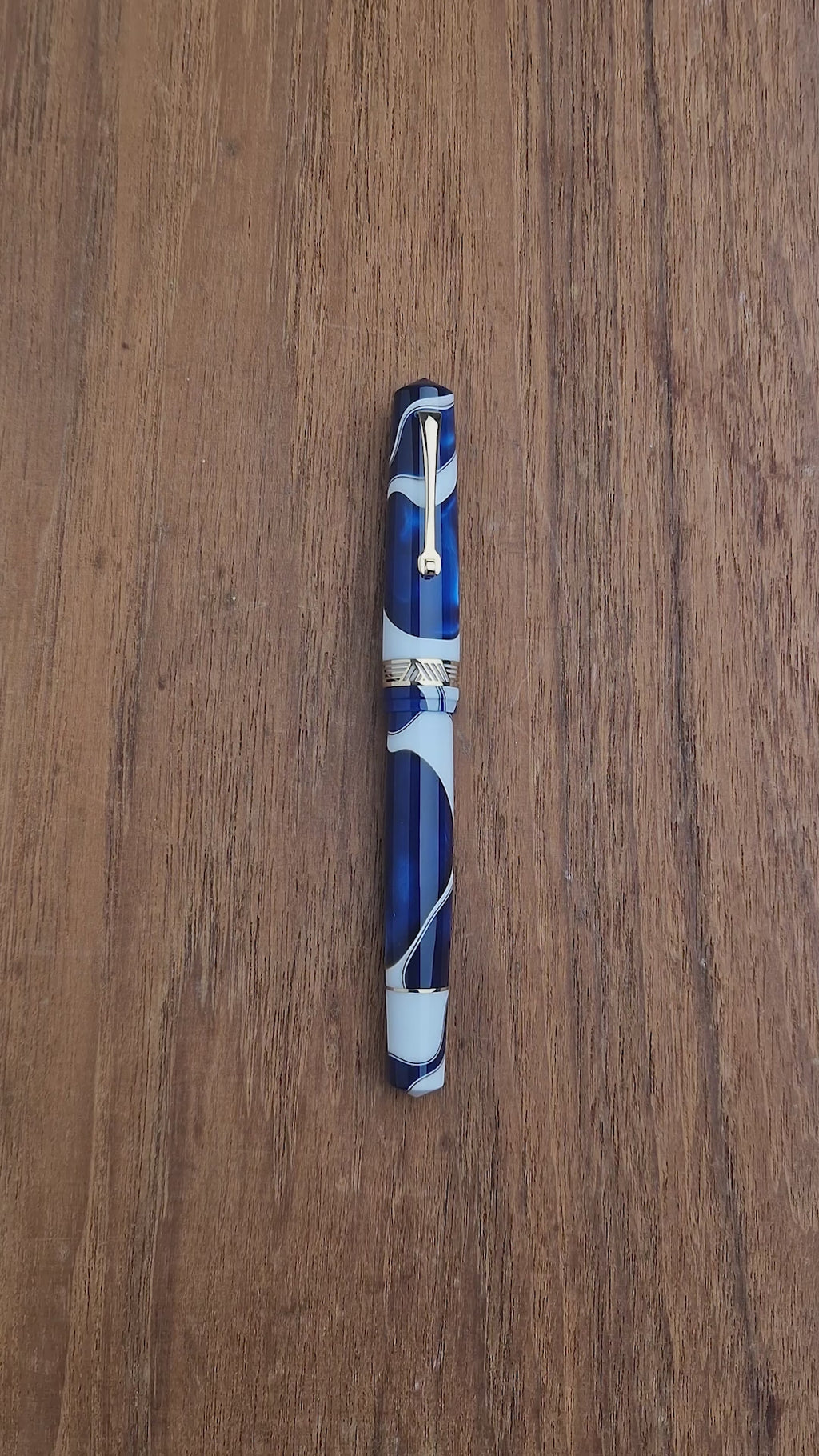 Drawing inspiration from the fluid elegance of ocean waves, the Onda Blue showcases refined curves and a rich deep-sea shade. A transparent window on the barrel provides a chic view of ink levels. Its expertly engineered integrated piston filling system, crafted exclusively in Leonardo’s atelier, holds up to 1.5ml of ink for prolonged writing enjoyment. Equipped with a 14K gold nib and an ebonite feed, it is offered with either silver or gold accents.