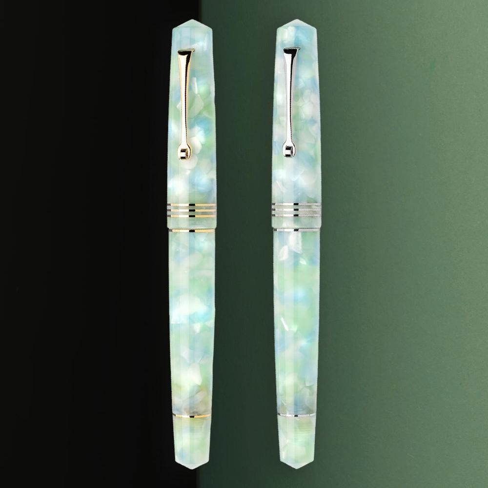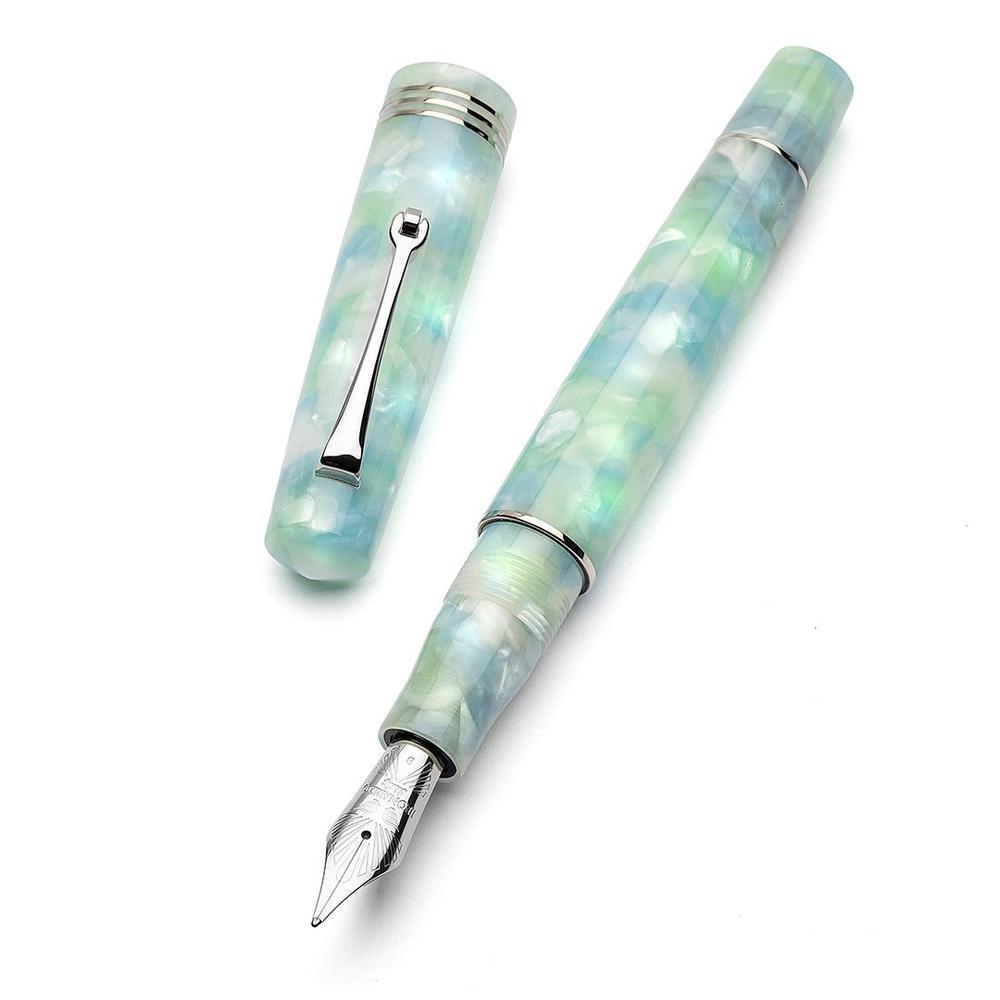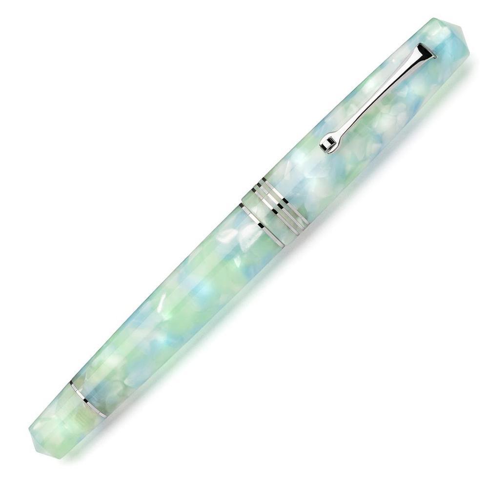 Discover the Leonardo Momento Zero Artica, a stunning fountain pen inspired by pristine polar landscapes. This Italian-crafted beauty captures the serene essence of glaciers and icy fjords through its harmonious blend of cool blues and crisp whites. Equipped with a dependable #6 stainless steel "la Fenice" nib, it delivers smooth, consistent writing. Choose between elegant gold or silver trim to match your style. The convenient cartridge/converter system makes refilling effortless, so you can focus on the joy of writing.