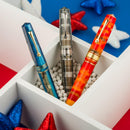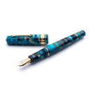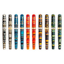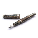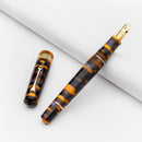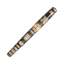 The Leonardo Mosaico (14K Gold) fountain pen is a finely crafted Italian piece, individually numbered but not limited in production. It features a piston filling system with a generous 1.5ml capacity and is offered in three classic colors—Sand, Hawaii, and Mango—along with two new additions: Baobab and Anemone. Made from spaghetti resin, the pen’s horizontal slab cut creates a distinctive mosaic effect with a squared texture on the sides, while the front and back display a unique "ringed Arco" pattern. The metal components are adorned with intricate three-dimensional pantograph engravings in palladium or gold, and it is fitted with a 14K gold nib.