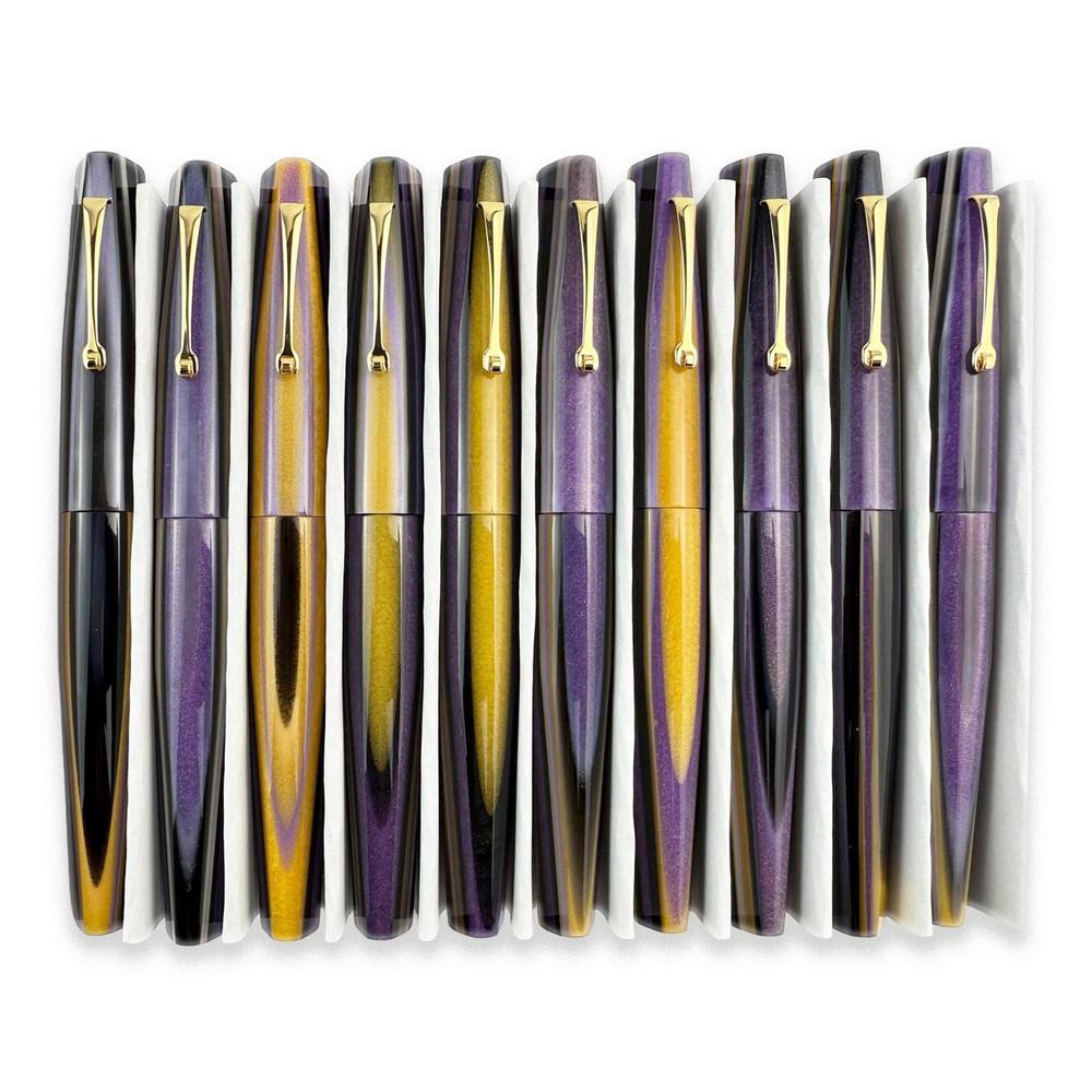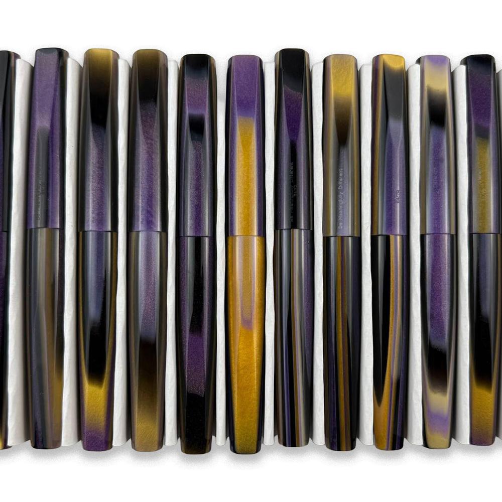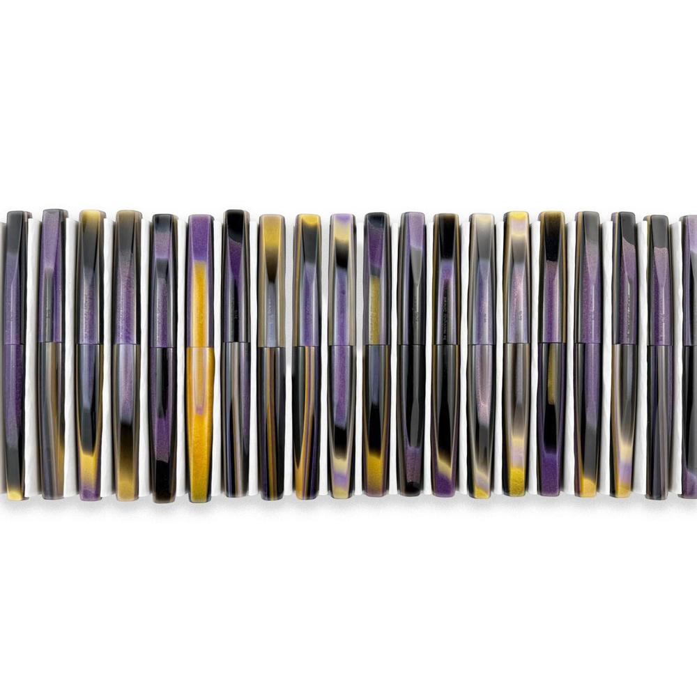 DISCLAIMER: The nibs on these pens are permanently fixed to their housings and cannot be swapped or removed. Each pen is shaped from a different piece of resin, resulting in distinct color patterns and variations. To showcase this diversity, we've photographed several pens to highlight the wide range of appearances.