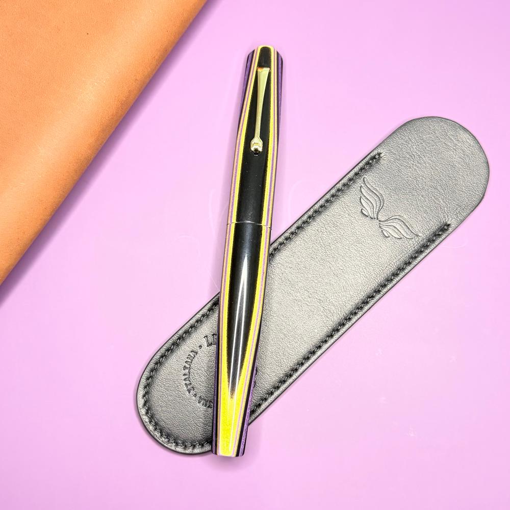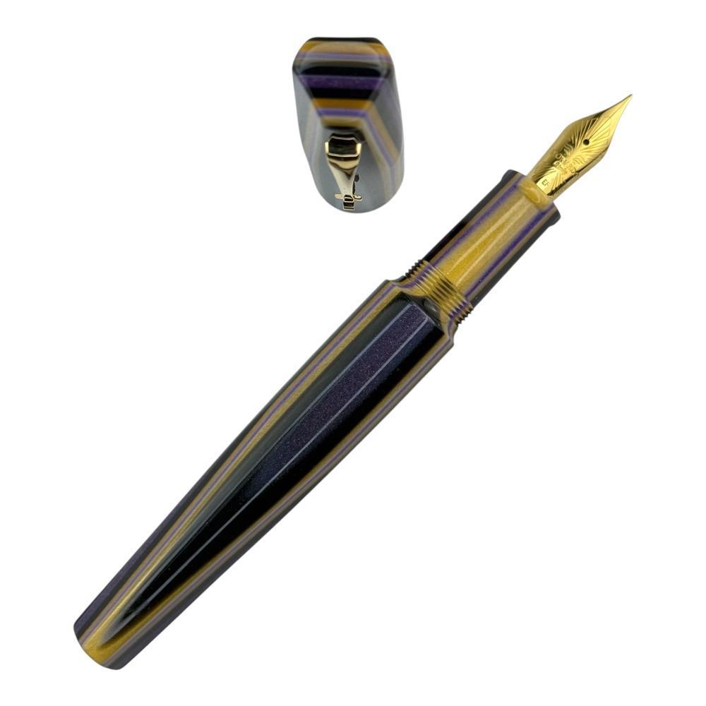 I wanted this to be an homage to one of my favorite designers, whose mantra, “Be meaningfully different,” shaped my entire approach to this project. The Leonardo Poliedrica embodies that philosophy perfectly from its distinctive faceted form to its triangular grip. Since the designer is based in Los Angeles, I chose what I feel are the city’s most iconic colors: gold and purple. But it was important to interpret them in a way that still honored that mantra so I worked with D2 to create a vertical line style blank. The final touch was engraving the actual phrase on the pen. I hope that when you reach for this pen, you see that engraving and it encourages you to embrace your own meaningfully different path.
