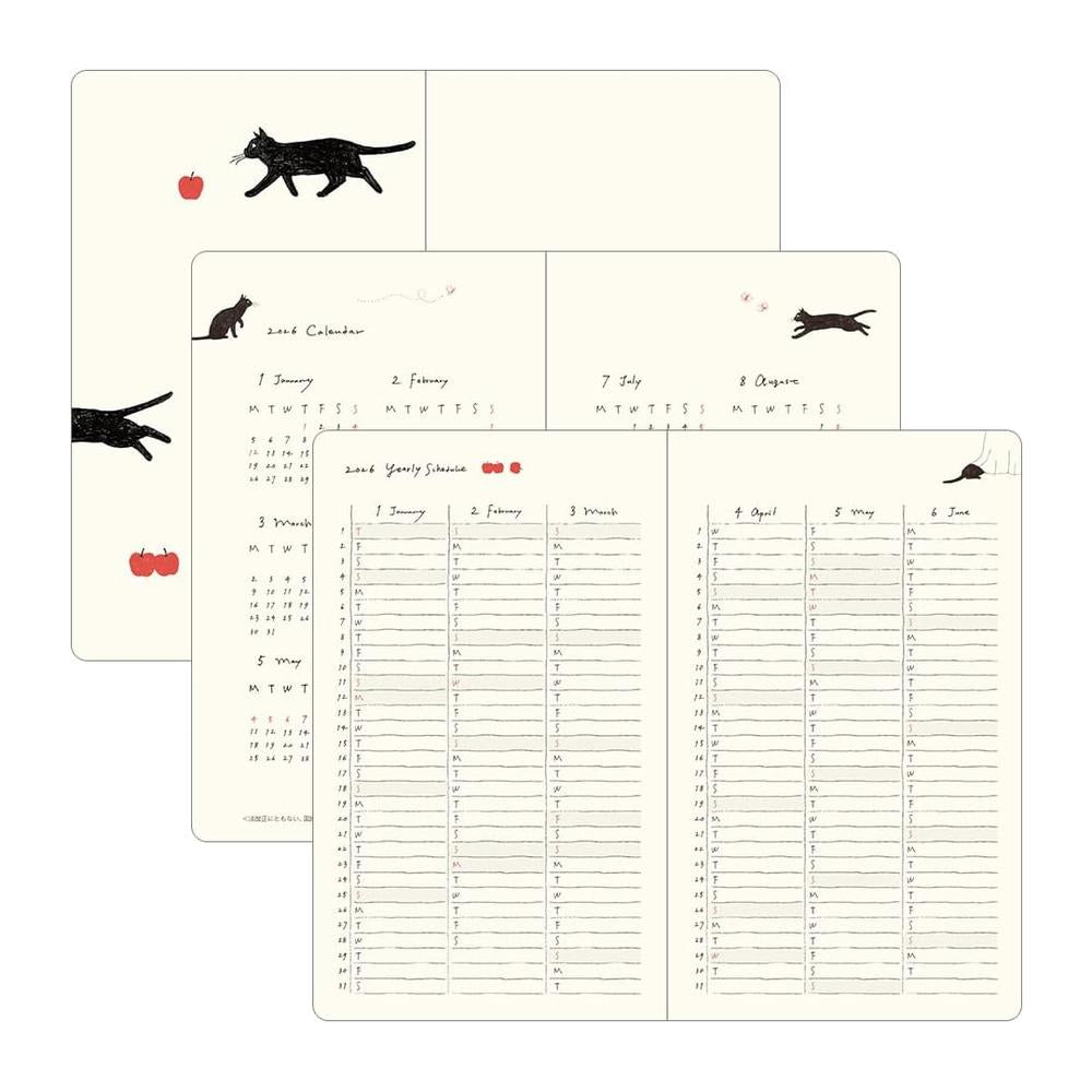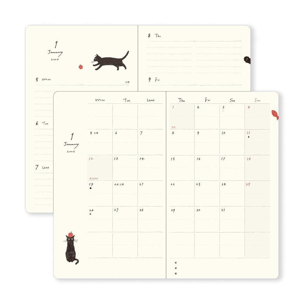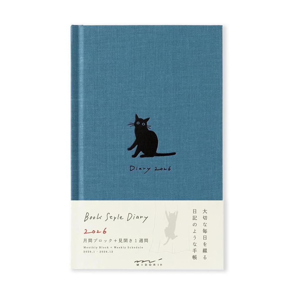 Meet your new favorite planning companion! This Midori B6 Book Style Diary in Cat Navy sports a gorgeous navy blue cloth cover with a foil-stamped black cat taking center stage. But here's the fun part—flip through the pages and you'll find the same adorable feline friend greeting you on every single page. It's like having a cute cat buddy cheering you on as you organize your days!