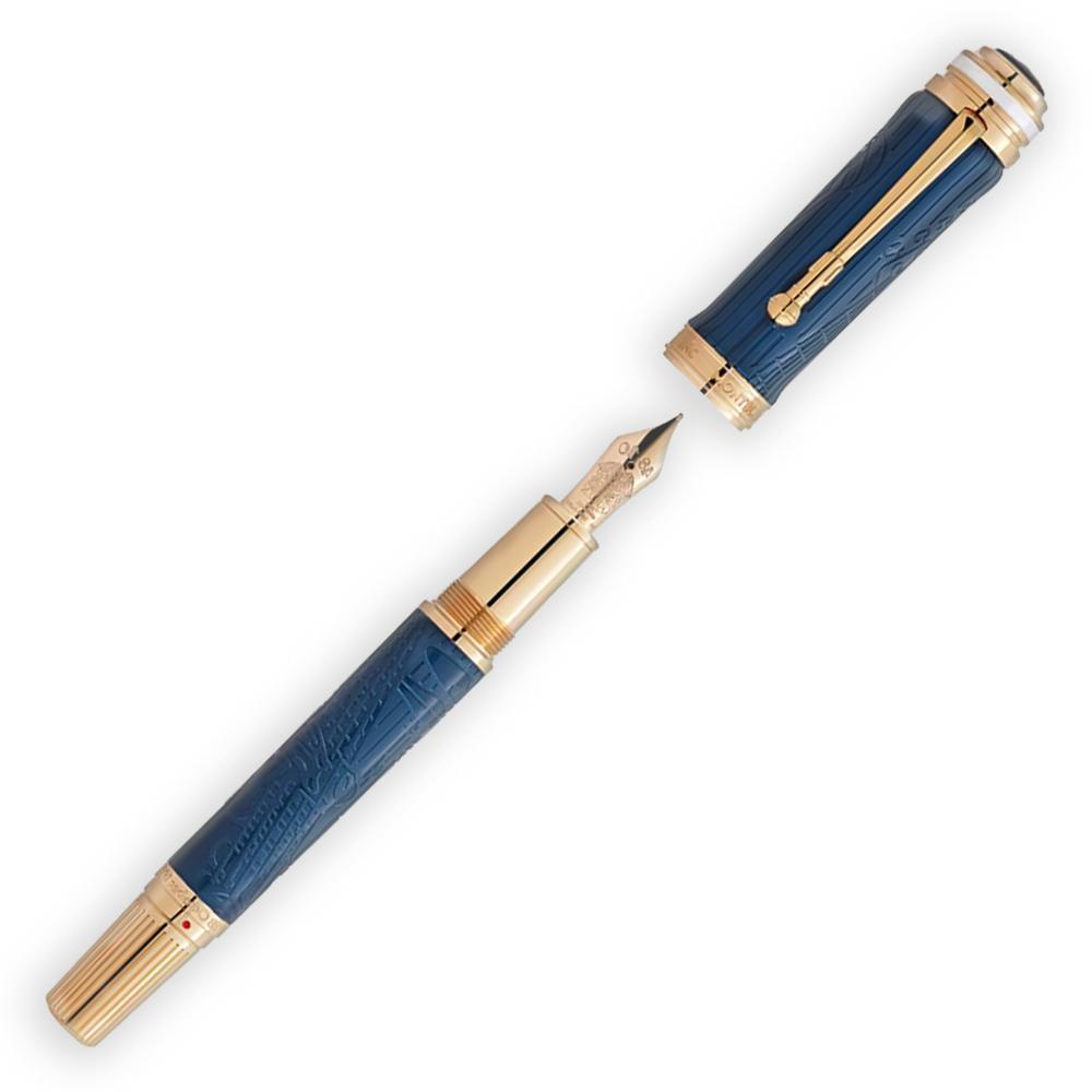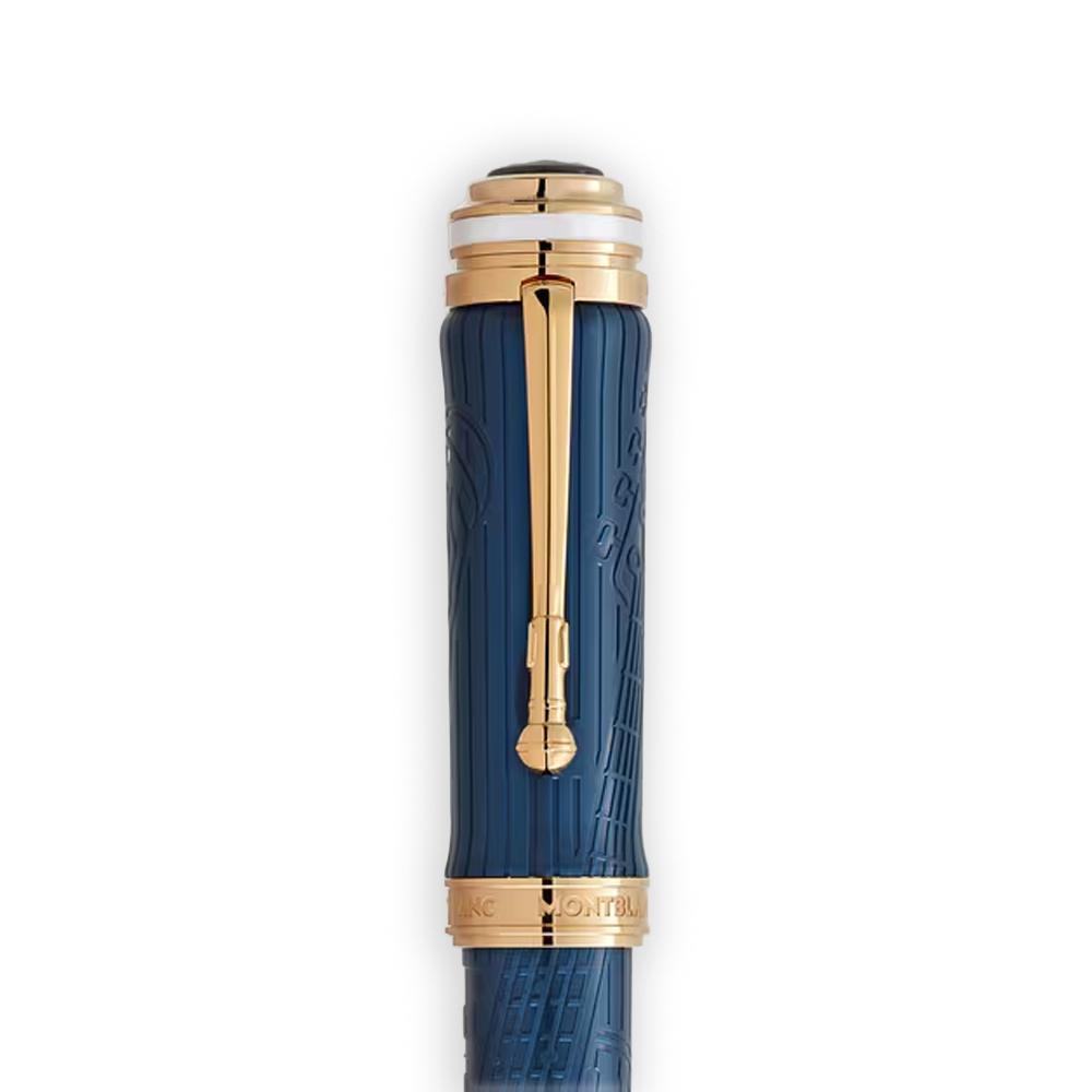 Celebrate the legendary sound of Queen with this stunning Montblanc Great Characters Special Edition fountain pen. Inspired by the iconic 1991 Greatest Hits II album, this collector's piece features a striking dark blue resin with gold-plated accents that mirror the album's unforgettable aesthetic. Every detail tells the band's story: the cap showcases a crown silhouette honoring Freddie Mercury's regal presence, while the barrel subtly depicts the instruments that shaped their revolutionary sound—microphone, bass, guitar, and drums. The nib is artfully designed with guitar-inspired fluting and a red accent, paying homage to Brian May's legendary virtuosity. A microphone stand-inspired clip completes this tribute to one of rock's most transformative bands. Perfect for Queen fans and pen enthusiasts alike, this is more than a writing instrument—it's a piece of musical history.