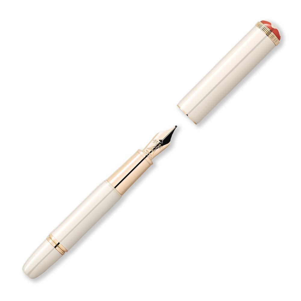 This exquisite fountain pen draws from Montblanc's storied past, reimagining the iconic "Baby" design that first emerged in the 1920s with contemporary refinement. Crafted in luminous ivory lacquer and adorned with precious gold-toned accents, the pen balances nostalgic charm with modern elegance. Its diminutive proportions—hence the affectionate "Baby" designation—make it an ideal companion for discerning writers. The crown features a Montblanc emblem in fine resin, accented by the distinctive coral tones of the Rouge et Noir collection. At its heart lies a meticulously handcrafted Au 585 solid gold nib, engraved with the silhouette of Mont Blanc itself, embodying the maison's commitment to exceptional craftsmanship and timeless design.