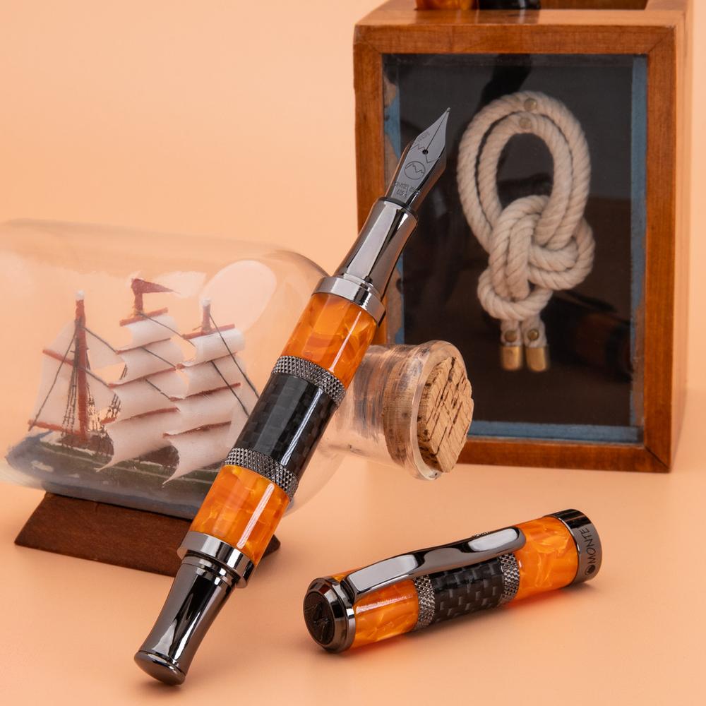 Make a bold statement with the Monteverde Regatta Sport in vibrant orange and carbon fiber. Designed for those who embrace adventure, this fountain pen pairs striking European-grade resin with refined gun metal hardware. The standout magnetic closure system handles both capping and posting with ease, while its carefully weighted design delivers exceptional writing comfort and control. Select your ideal nib width from extra fine, medium, broad, or stub to suit your writing style. Refill using Monteverde standard international G3 cartridges or the convenient piston converter that's included.