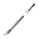 The Opus 88 Fountain Pen - Demonstrator features a see-through design and is fitted with a steel nib. The pen can be filled using an eyedropper and offers ample ink storage and versatility for writing tasks.