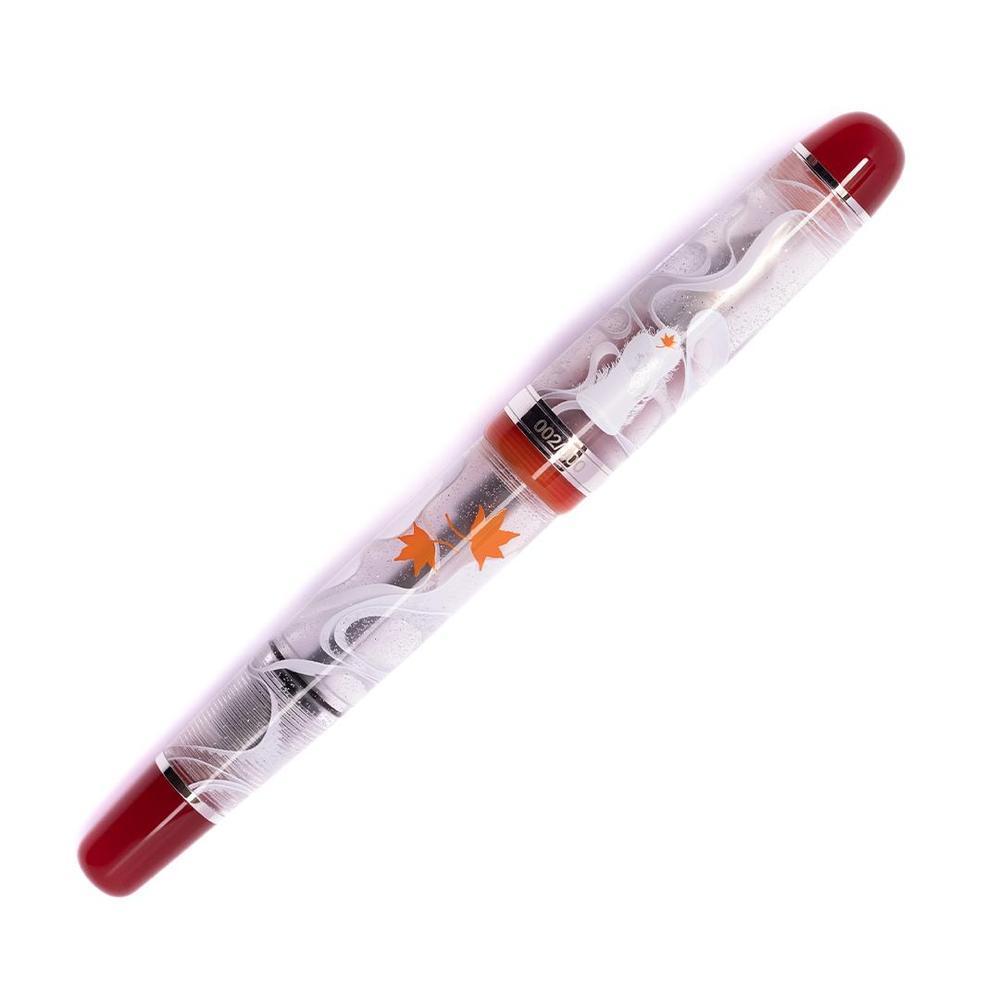 Step into autumn elegance with this captivating 2025 limited edition fountain pen from Opus 88. The Jazz Cat Walk design showcases a distinctive cat paw barrel adorned with delicate autumn leaves, creating a playful yet sophisticated aesthetic. Warm amber tones frame the top and bottom, while crisp white ribbons and shimmering silver powder add refined detail. Platinum-finished pen parts ensure durability and timeless appeal. Each numbered edition features a personalized engraving on the cap band, making it a collectible treasure. Smooth stainless steel nib delivers a delightful writing experience—perfect for those who appreciate artistry in every stroke.