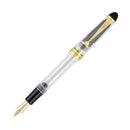 The Pilot Custom 823 fountain pen is an iconic choice that exudes timeless elegance. Its demonstrator-style design is available in three captivating options: a smoky grey barrel, a captivating amber barrel, or a NEW clear barrel, all adorned with exquisite gold accents that radiate an aura of refined sophistication. This exceptional pen features a 14 karat gold #15 nib, adding to its luxurious appeal.