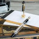 With the largest ink reservoir in Pilot's collection, the Custom 823 ensures uninterrupted writing pleasure. Its unique vacuum plunger system allows for easy refills with Pilot's bottled ink, guaranteeing a consistently smooth and enduring writing experience. Elevate your writing with the Custom 823, a symbol of enduring style and unmatched craftsmanship. Available in Fine, Medium, Broad, or Signature nib offerings, it caters to your unique writing preferences: