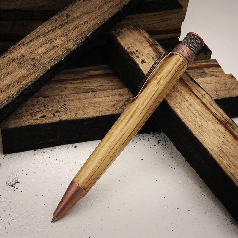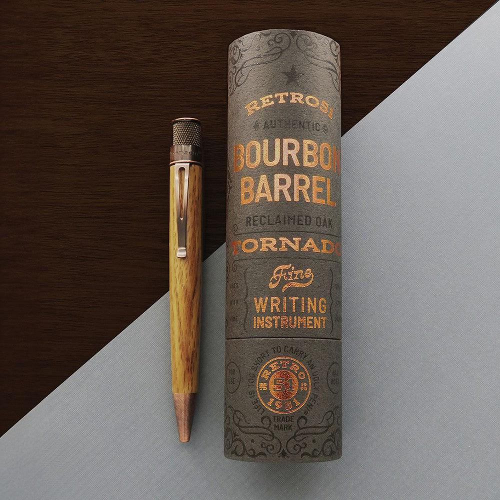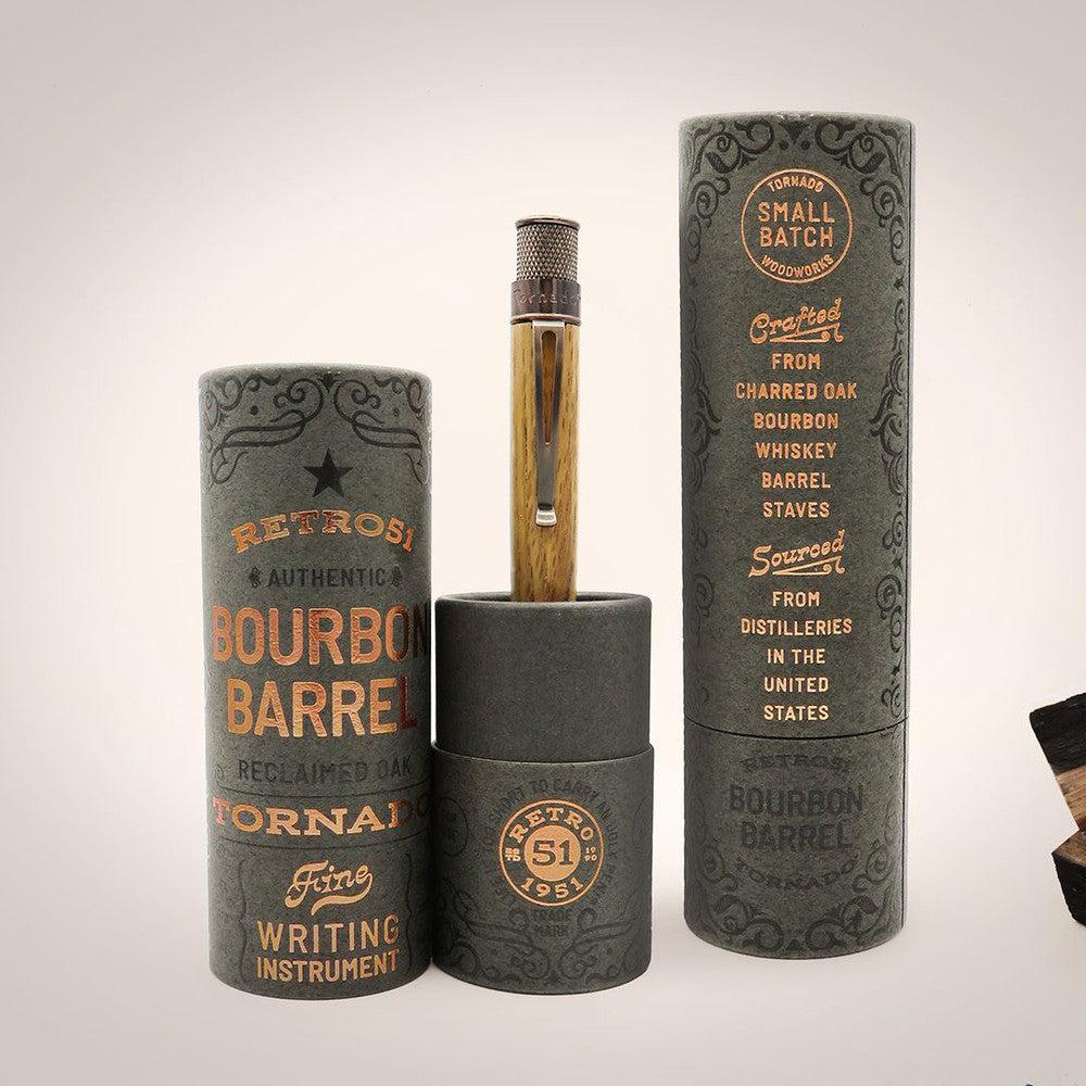 Indulge in the art of fine writing with the Bourbon Barrel Tornado™ Rollerball pen. Steeped in tradition and quality craftsmanship, these pens have been meticulously produced from charred oak barrel staves that once housed some of the finest bourbon whiskey in the United States. The reclaimed oak has been sourced from US distilleries and skillfully turned down into the pen barrels that are finished with stonewashed copper accents and loaded with a rollerball refill that is as smooth as the spirit it once nurtured. They are packaged with sophistication in a decorative tube to display proudly on your desk or store your Bourbon Barrel when not in use.
