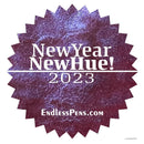 New Year, New Hue! 2023 is an Endless Exclusive ink designed by @micahfinds and handcrafted by Robert Oster. The base is a rich magenta with wonderful shading, while the shimmer particles are a light purple that compliments this year's hue!