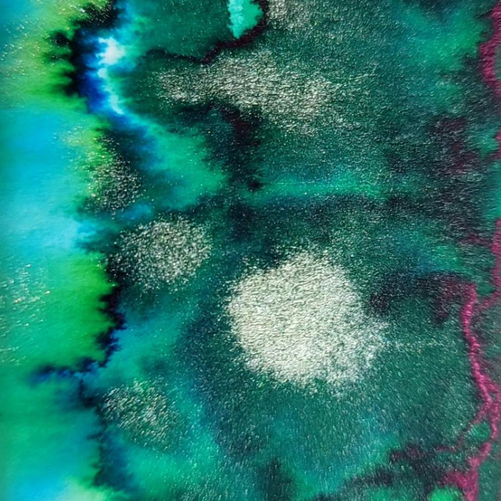 Lake Huron has the longest shoreline of all the great lakes. She is home to the largest freshwater island in the world and has some of the most stunning waters in Canada. I designed the ink with this in mind. The teal represents the waters and the glitter is a shout out to all of the stunning sand beaches that Lake Huron boasts.