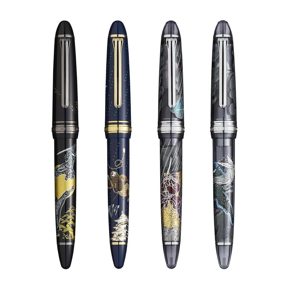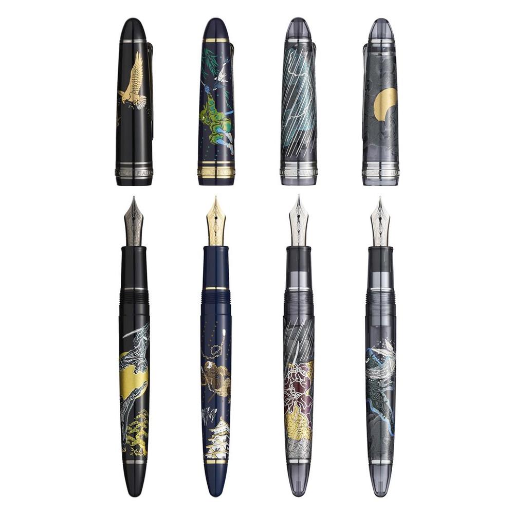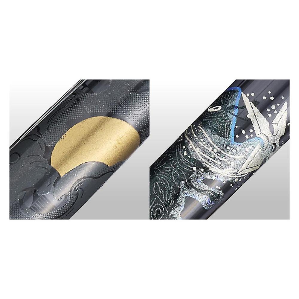Specifications - Type: Fountain Pen - Body Material: PMMA Resin with Yuubi Maki-e - Cap Type: Screw - Filling Mechanism: Cartridge / Converter - Nib Material: 14K Gold with Rhodium plating (Shachihoko & Star), 14K Gold with Black Iron plating (Katana), 14K Gold with gold plating (Kusarigama) - Size:Φ 17mm X 135mm - Weight: 17g