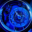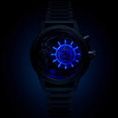 The Blue Z, holding it's own, both rugged and mysterious, while retaining a timeless classic identity. In monochrome, subtly reflecting shades of blue, underlined by a futuristic solid stainless steel band and original LED backlighting for ultimate night vision.