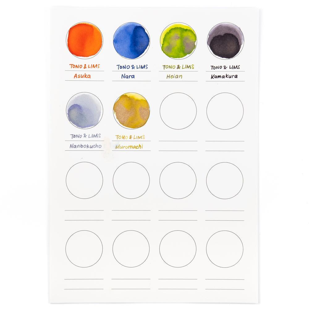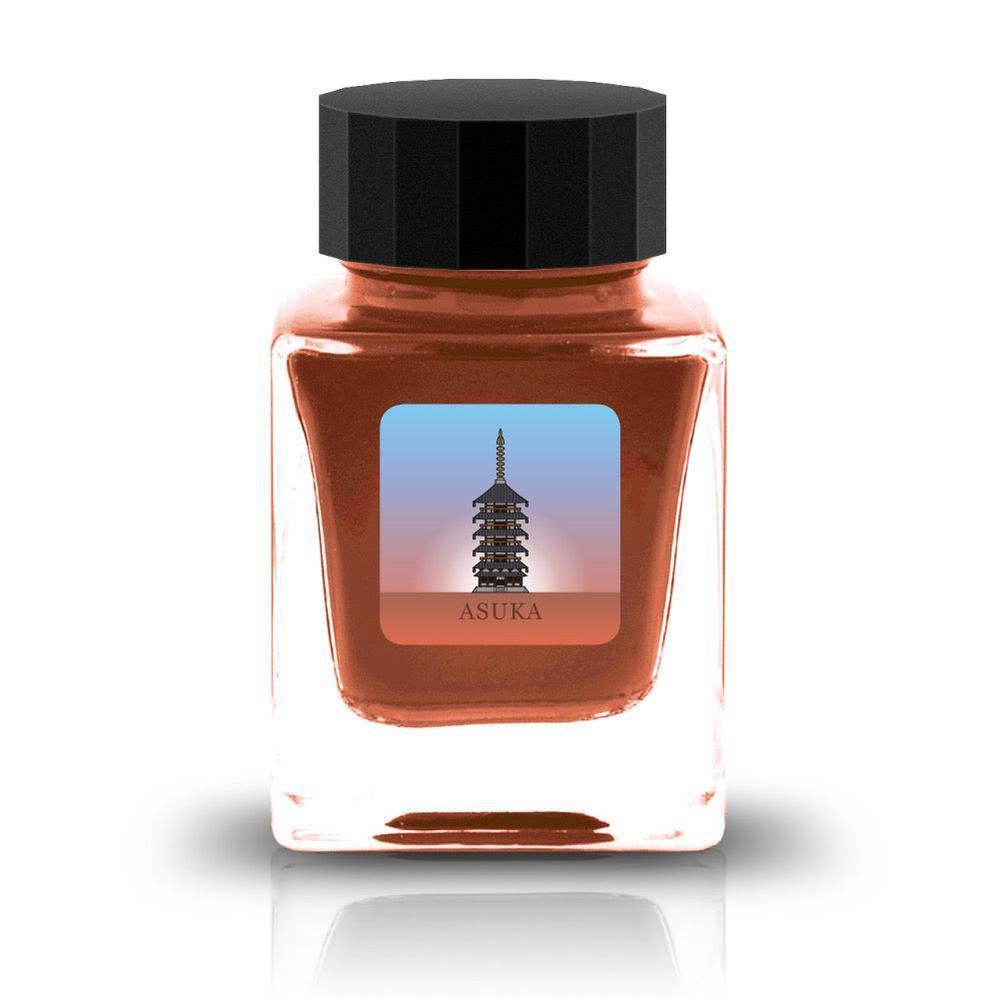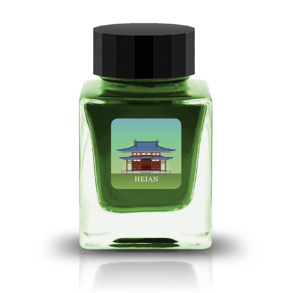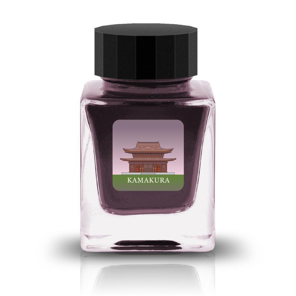 The Tono & Lims Time Travel Line features fountain pen inks inspired by distinct eras of Japanese history, showcasing deep, evocative hues, some enhanced with subtle shimmering accents.