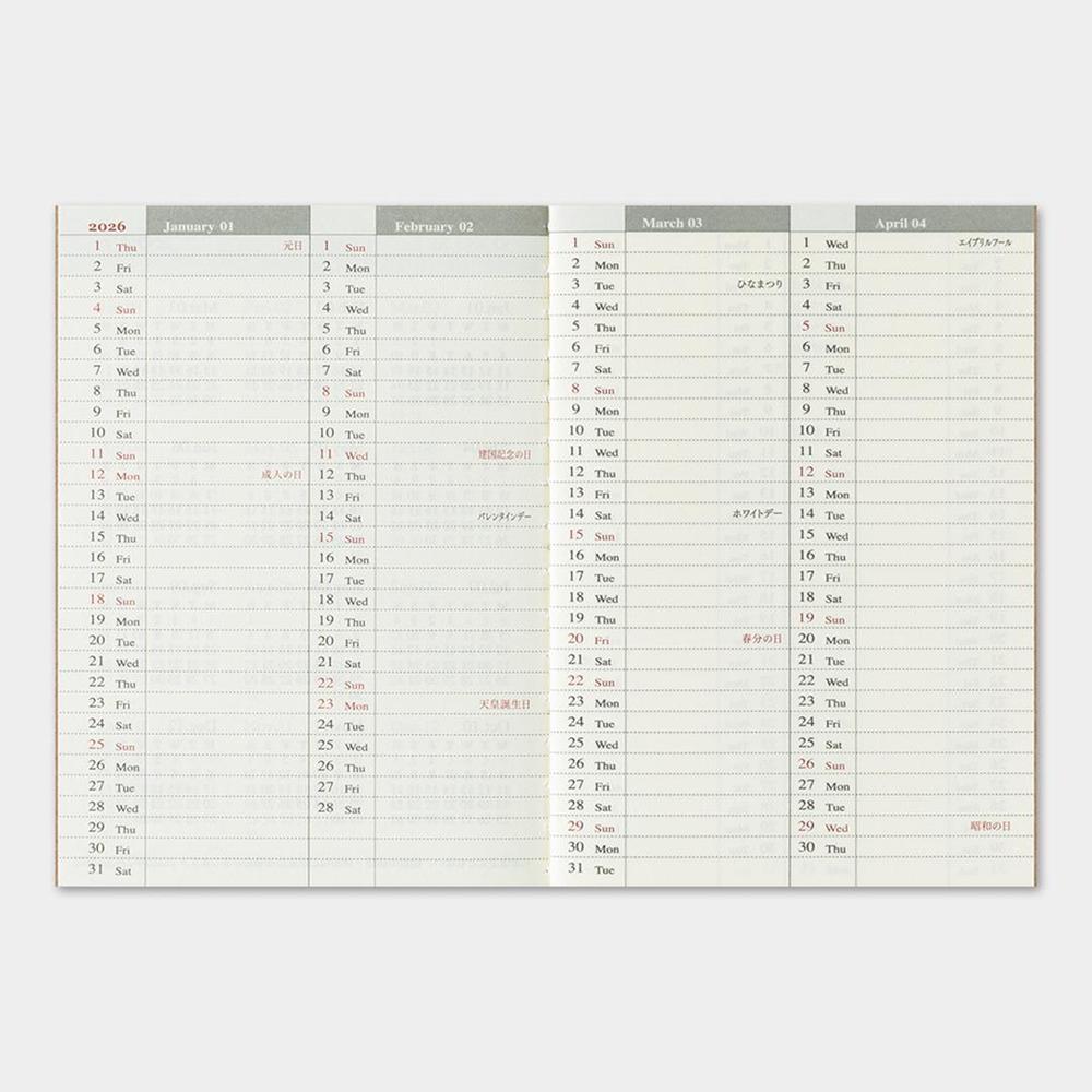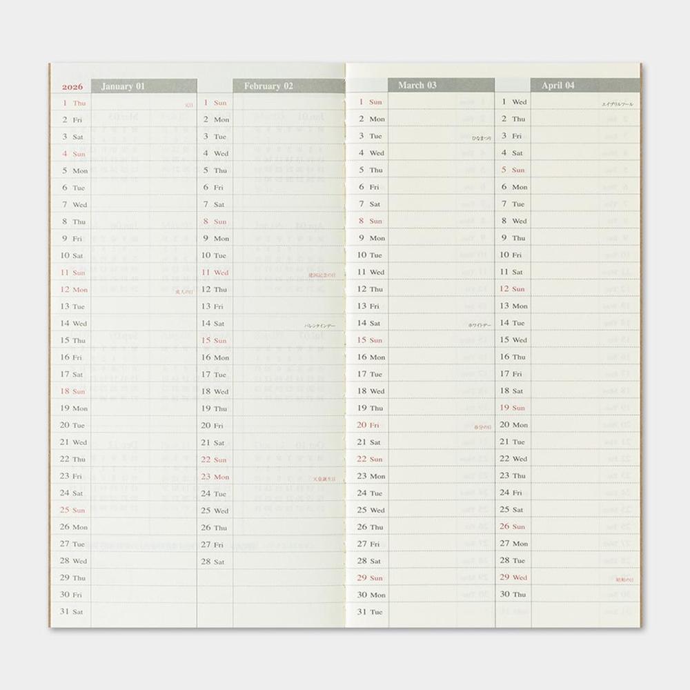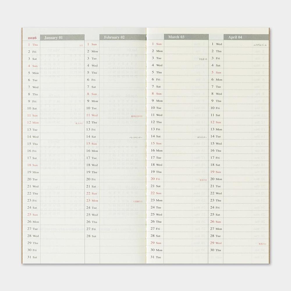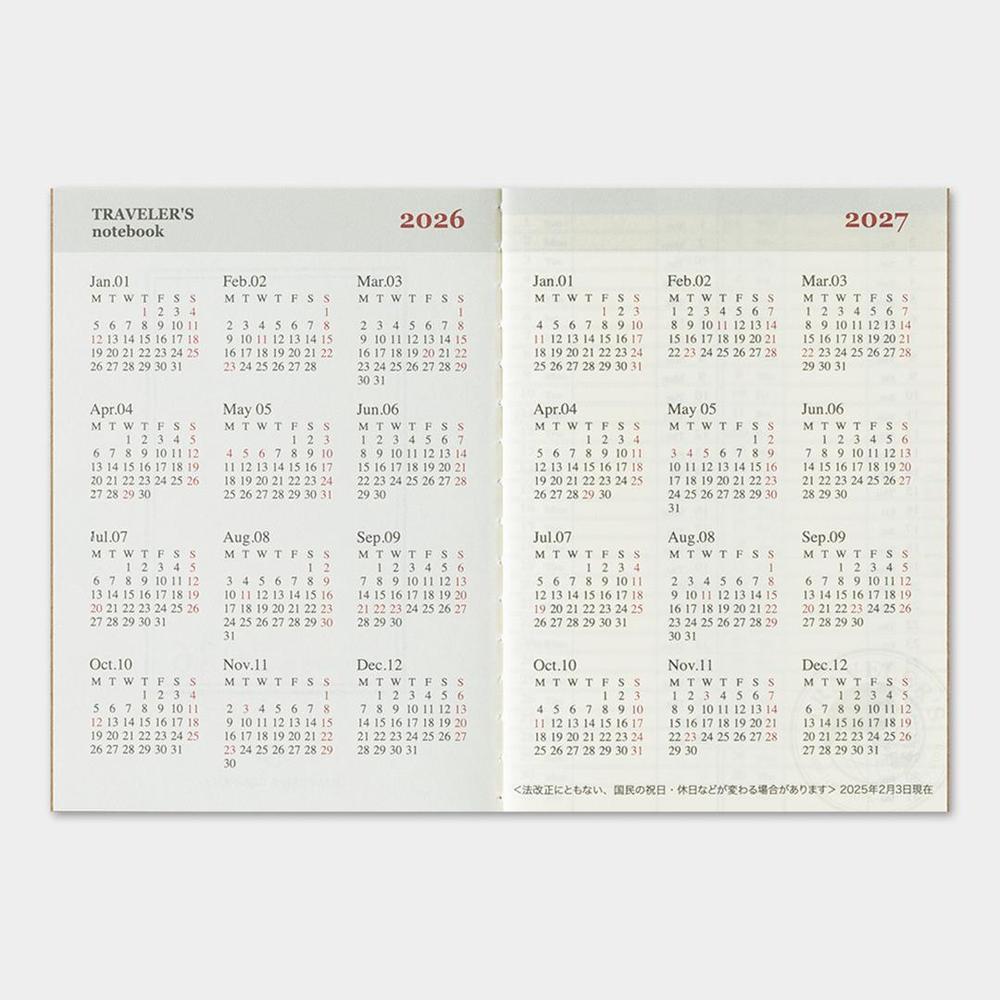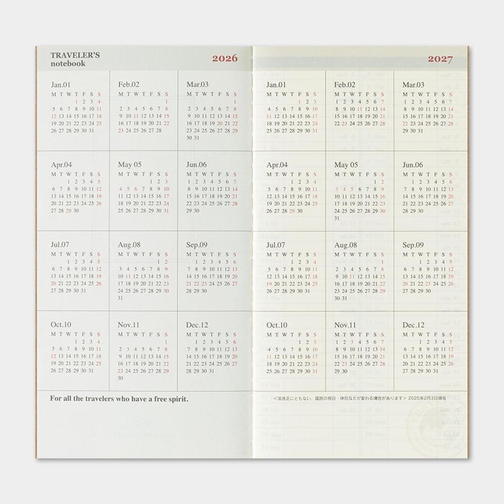 The 2026 Diary Refills for TRAVELER’S notebook come with a Guide and a customizing sticker to help you personalize your planning journey.
