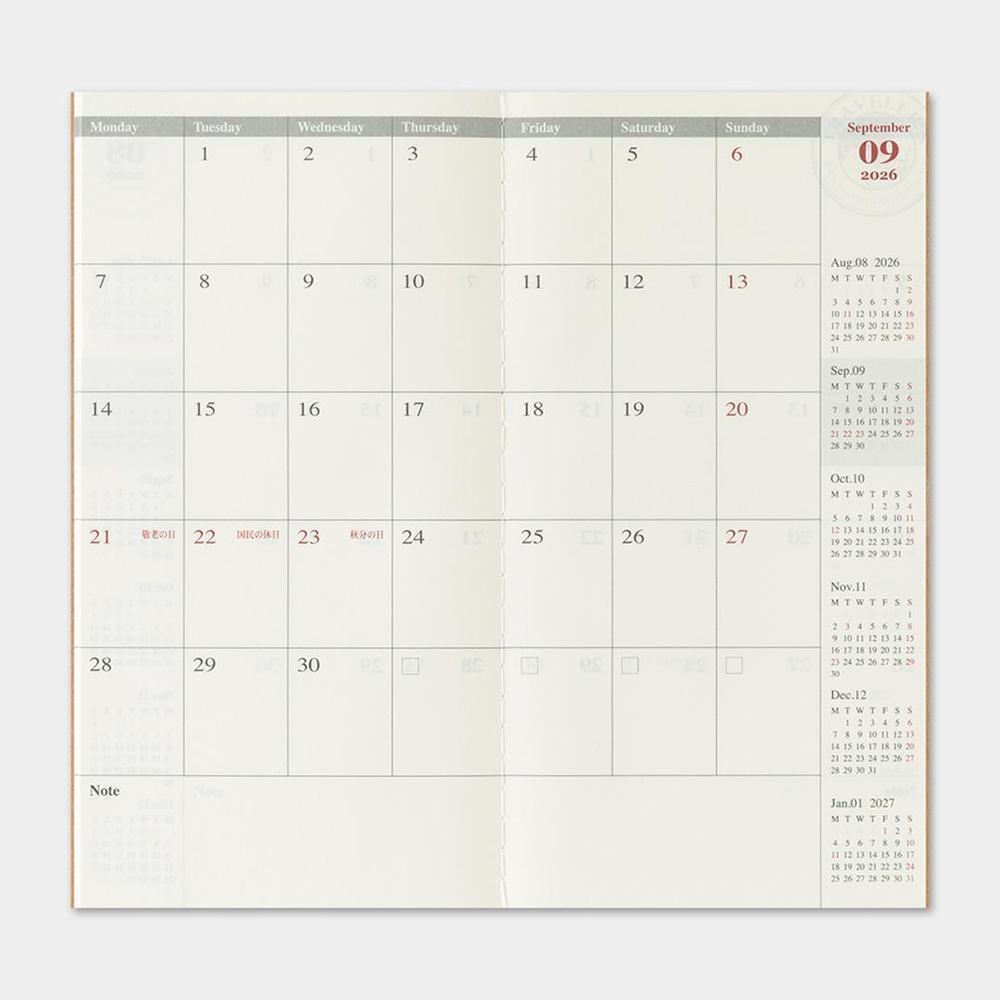 This Monthly Diary is the most straightforward way to view your schedule at a glance. Compact and portable in passport size, it’s perfect as a secondary planner — ideal for jotting down anniversaries, birthdays, or key events. Made with TRAVELER’S original MD paper, it resists feathering and bleed-through, even with fountain pens.