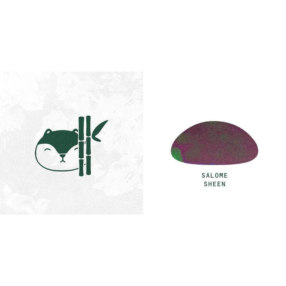 Salome (Sheen) makes a triumphant comeback—a cherished green ink from Troublemaker's heritage, now enhanced with improved flow and a radiant iridescent sheen. This beloved classic glides effortlessly across the page while catching the light with luminous beauty.
