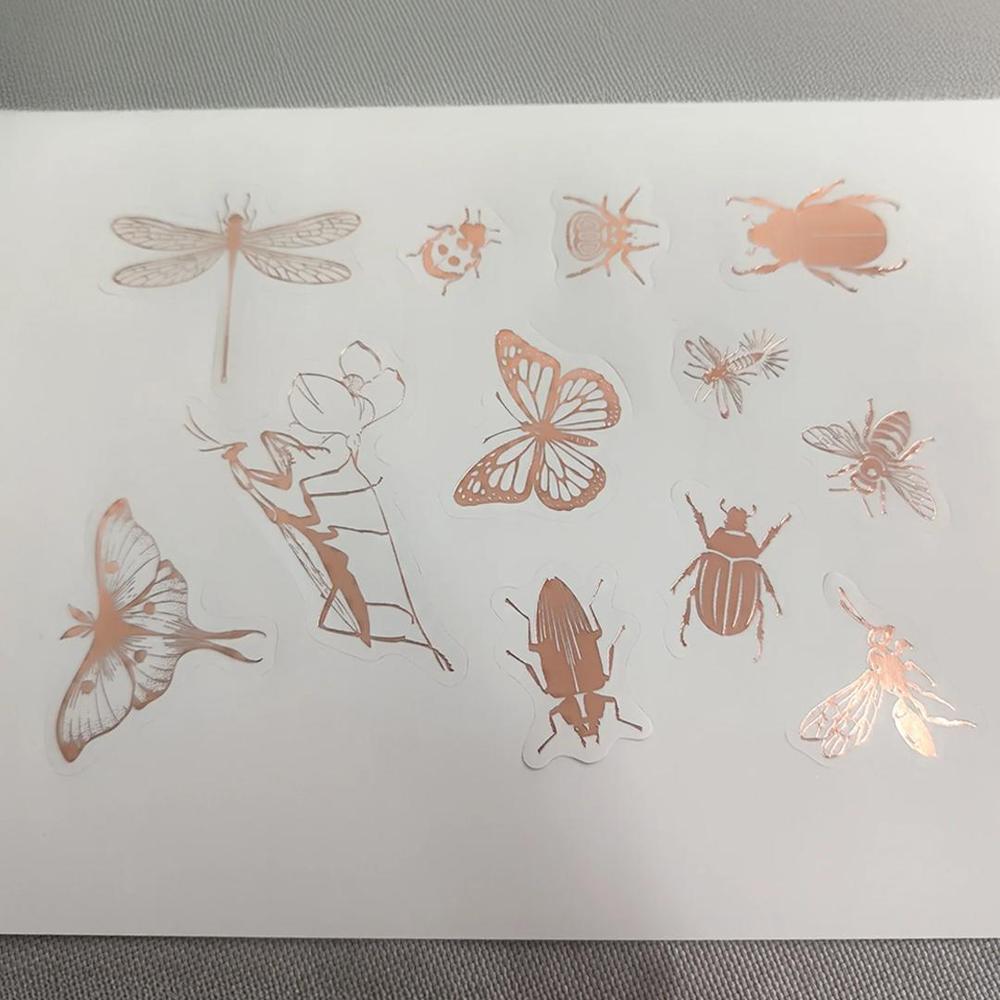 Twelve insects rendered in metallic gold, die cut and ready to decorate your notebooks, planners or storage boxes. These sticker sheets were designed to be both decorative and collectable, a little extra sparkle to match the nature of the collection.