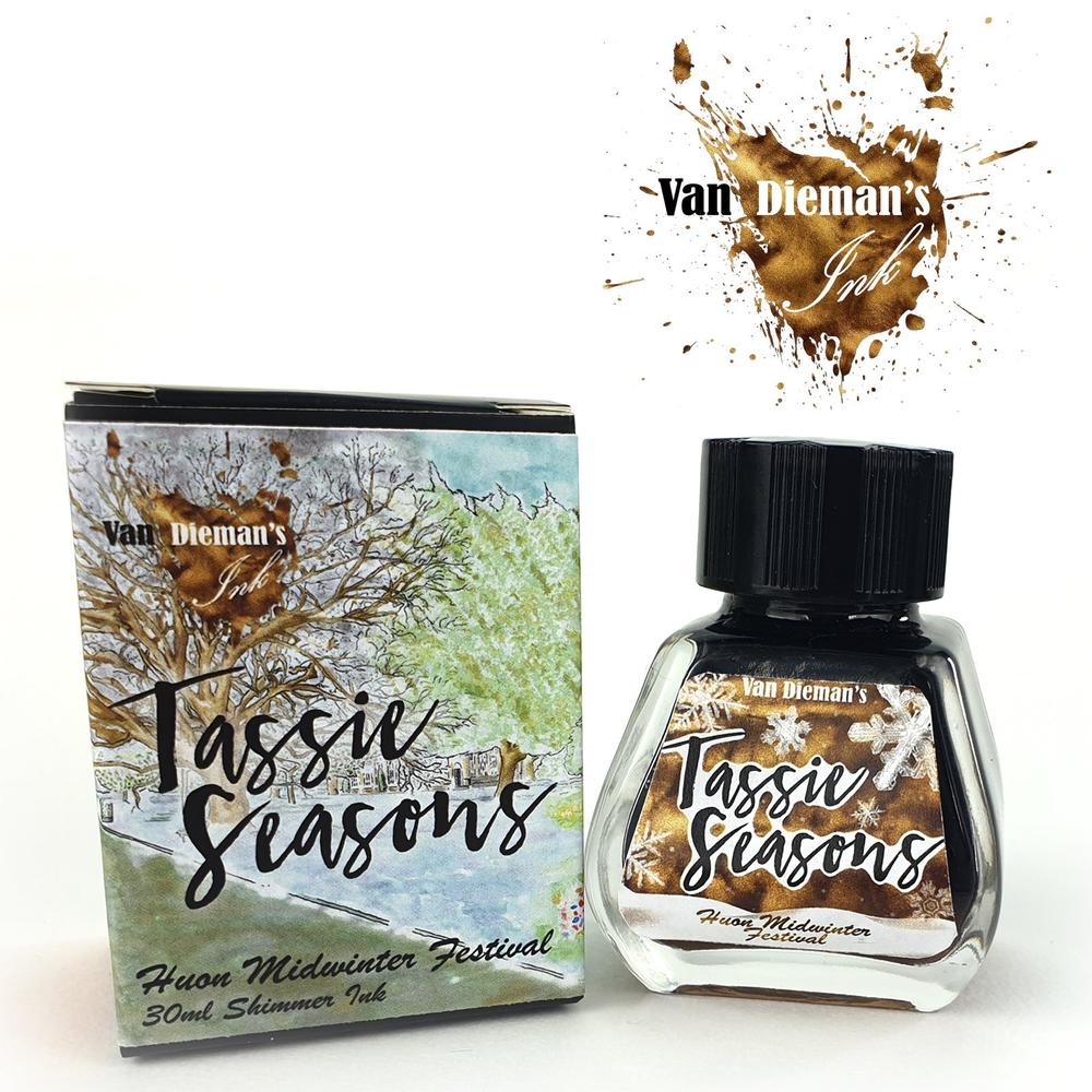Tassie Seasons is the fifth series in Van Dieman's expanding collection of Tasmanian Fountain Pen Inks. These sixteen inks encapsulate the changing colours of Tasmania, with four inks dedicated to each season. Tassie Seasons is a mix of dark and light, warm and cool, every-day writing worthy and artistically minded colours, including two shimmer inks.