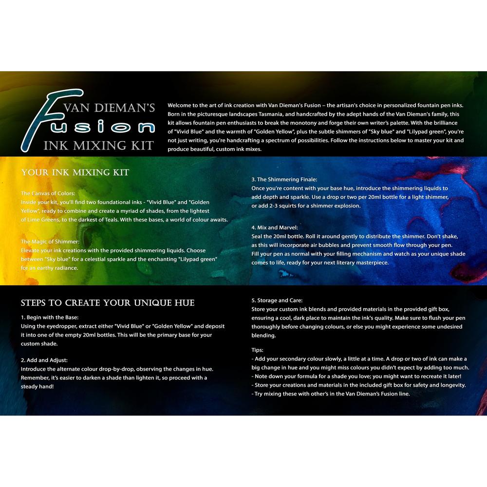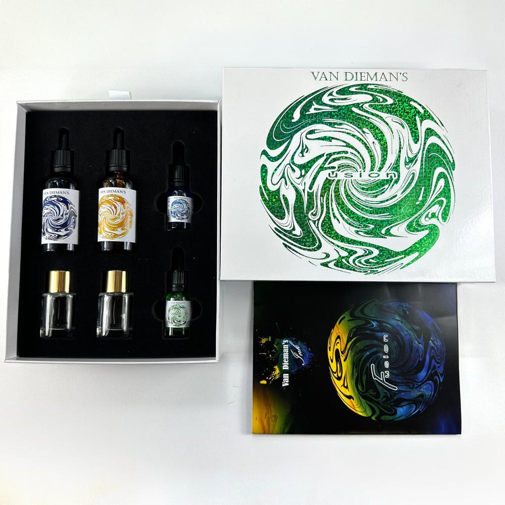 A world first in Fountain Pen Ink customization, Van Dieman's Ink from Launceston Tasmania, brings you FUSION - 5 Ink Mixing Kits with infinite possibilities.