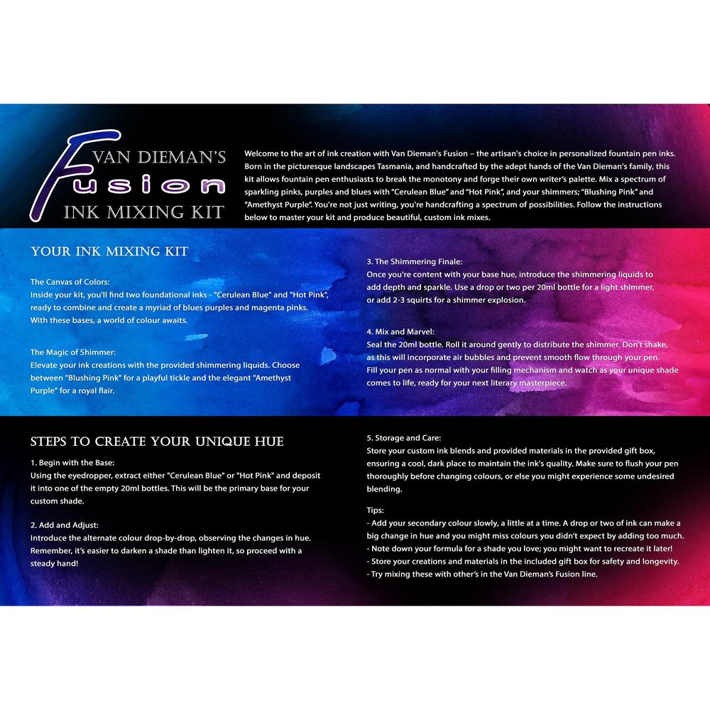 In a pioneering stride for fountain pen ink customization, Van Dieman's Ink from Launceston Tasmania introduces FUSION - 5 Ink Mixing Kits with a universe of colors at your fingertips.