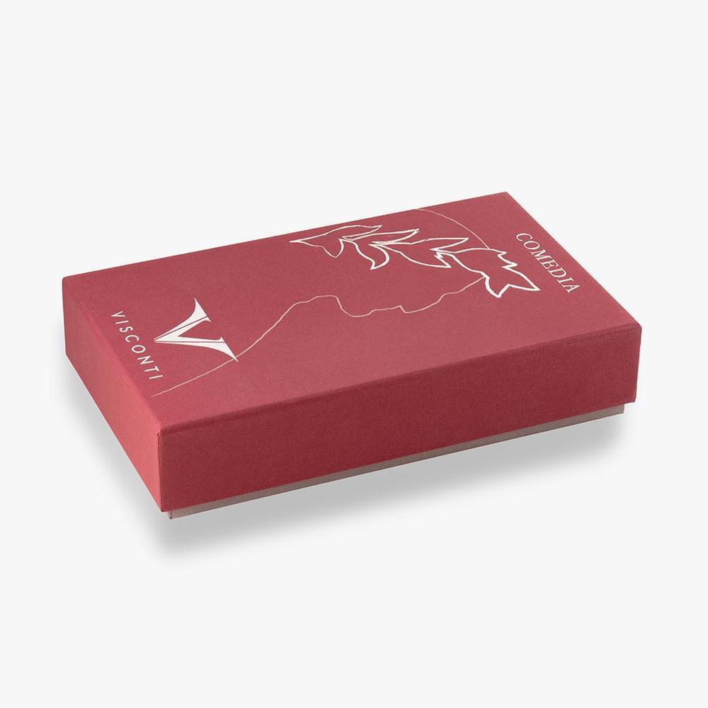 Rooted in the literary brilliance of Dante Alighieri's Divine Comedy, this Visconti Comedìa collection showcases carefully selected resin hues and metal accents that evoke the poem's three realms—Inferno, Purgatorio, and Paradiso. A testament to refined penmanship, this writing instrument merges classical inspiration with meticulous craftsmanship, making it an exceptional choice for those who appreciate both literature and elegant writing tools.