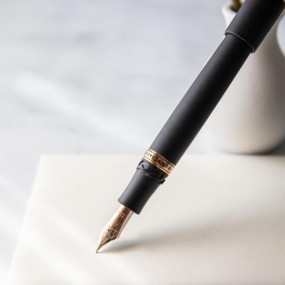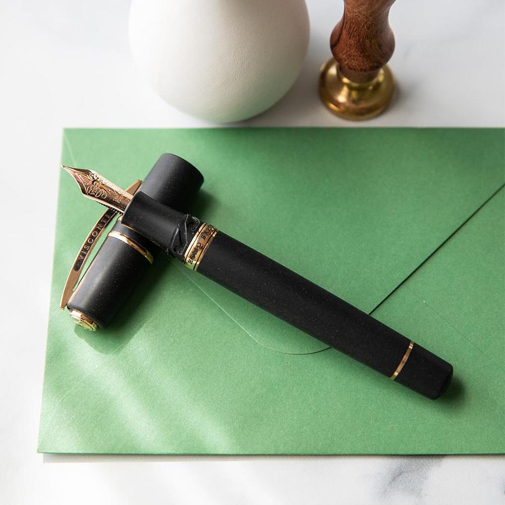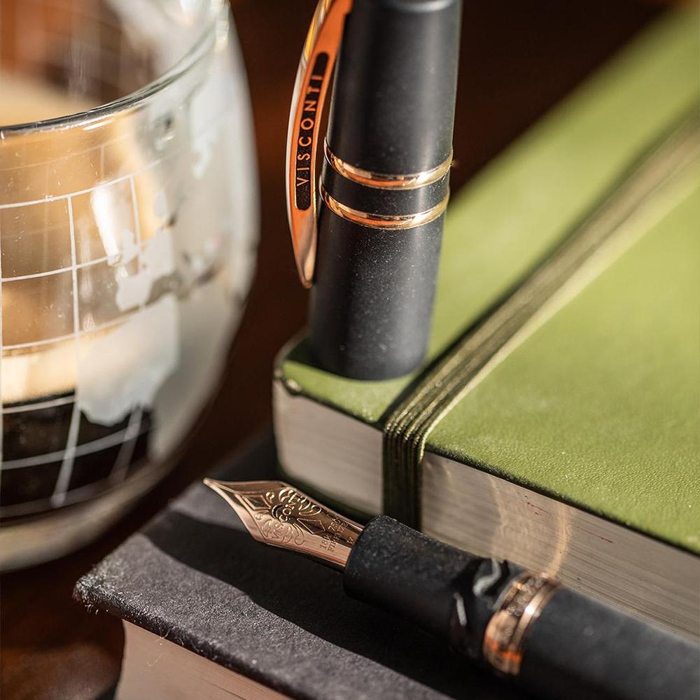 Discover the Visconti Homo Sapiens Bronze Age—a remarkable fountain pen crafted from Mount Etna's basaltic lava and resin using Visconti's exclusive formula. The striking black lava body paired with bronze accents naturally develops character and patina as you use it. Engineered to be virtually unbreakable while remaining moisture-resistant, this pen feels wonderfully smooth and velvety in hand. The innovative hook safe system keeps your cap secure, with an intuitive twist-to-close, push-and-turn-to-open mechanism. Own a piece of writing history—a pen forged from nature itself, refined by Italian craftsmanship.