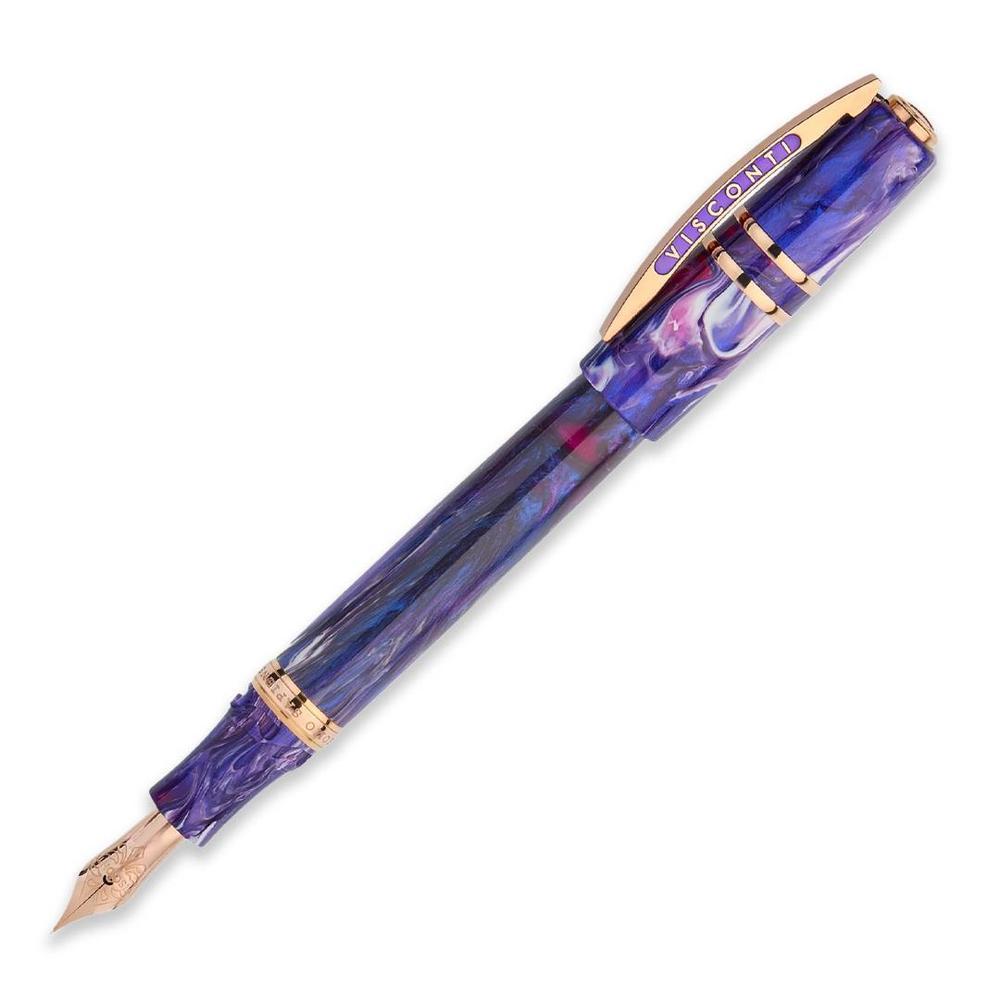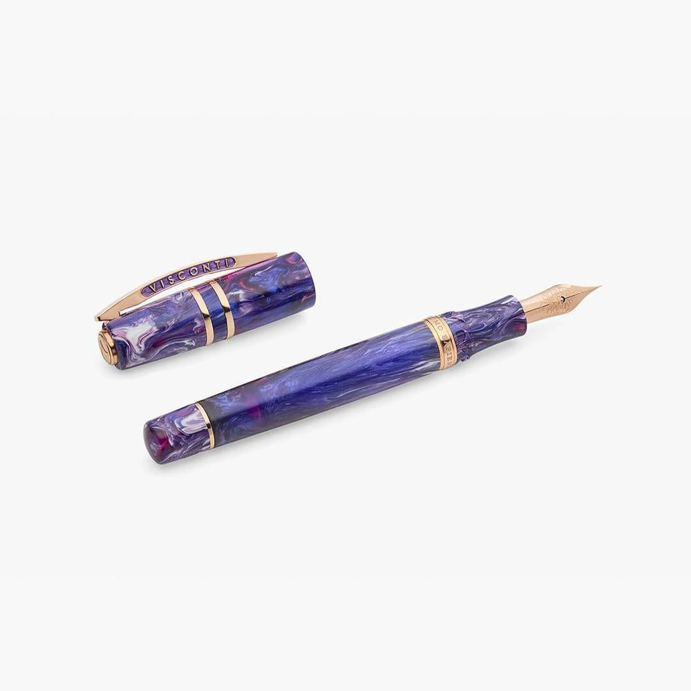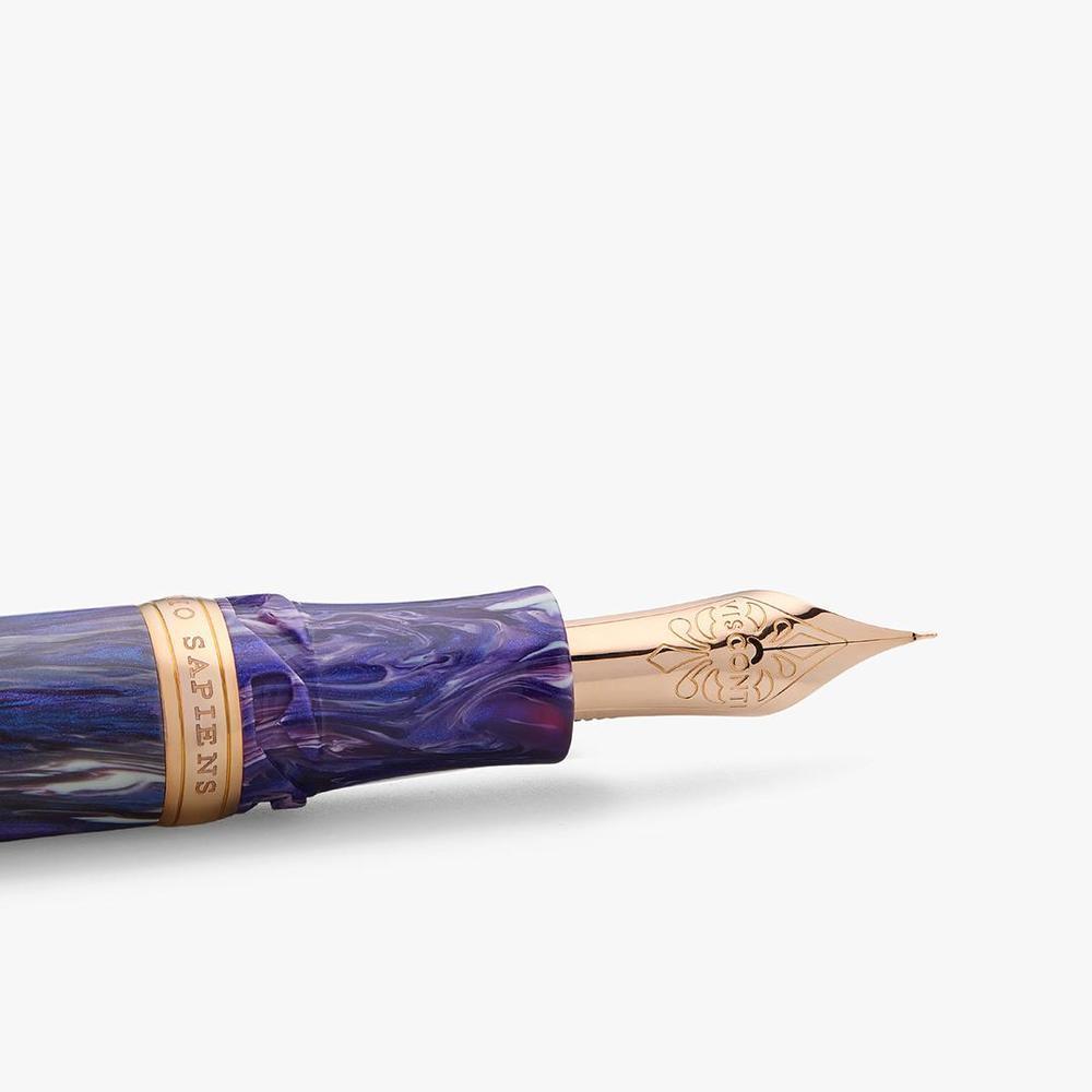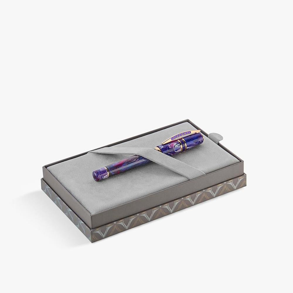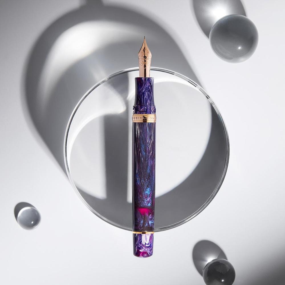The final masterpiece in Visconti's Earth Origins collection, the Aether fountain pen showcases a hand-mixed acrylic resin that shifts between deep violet and radiant indigo. Limited to just 388 pieces, it features rose gold-plated trims, an 18kt solid gold nib crafted in Florence, and Visconti's patented vacuum filling system for exceptional ink capacity.