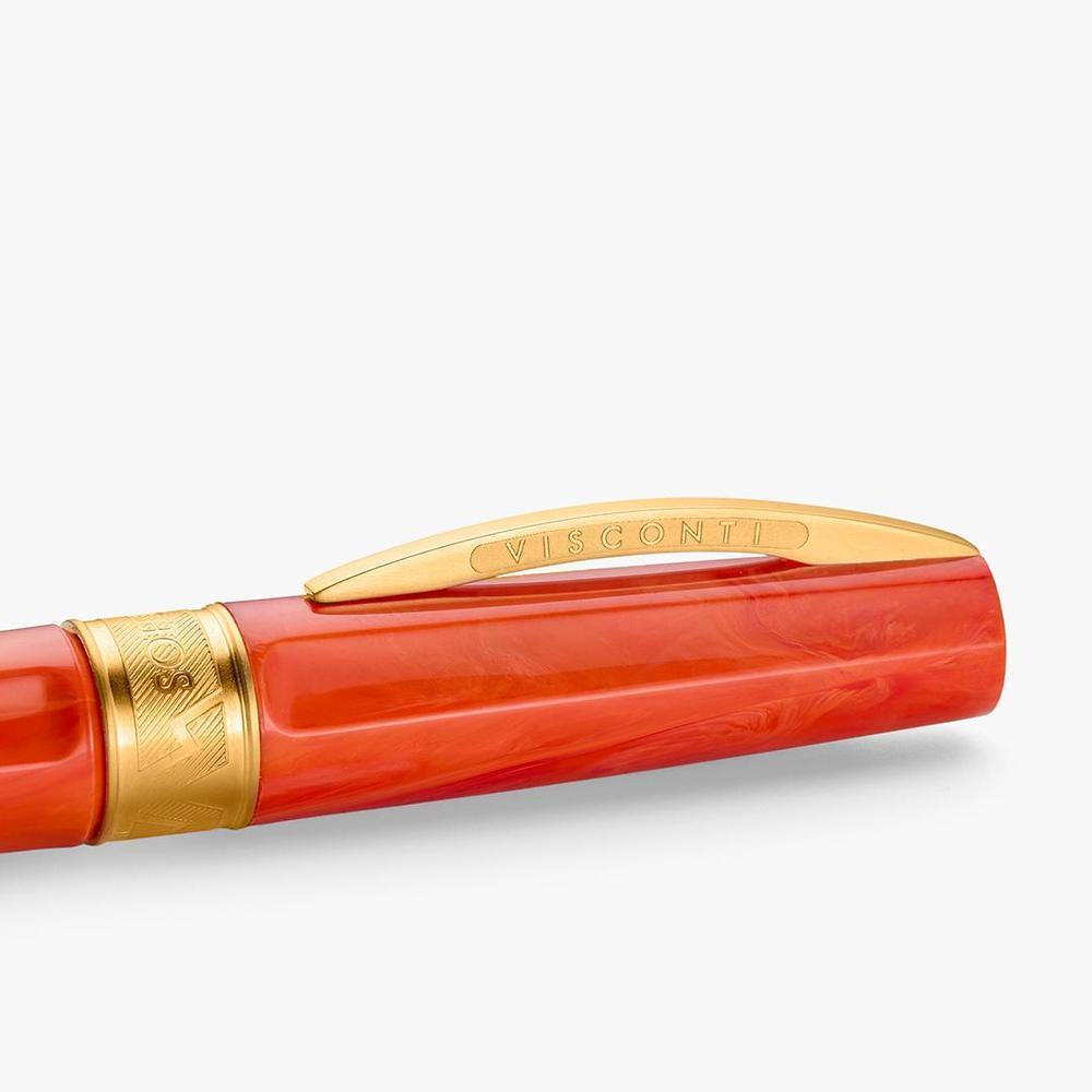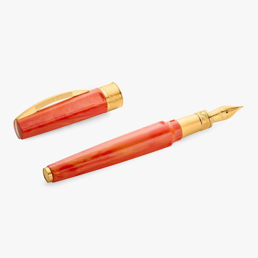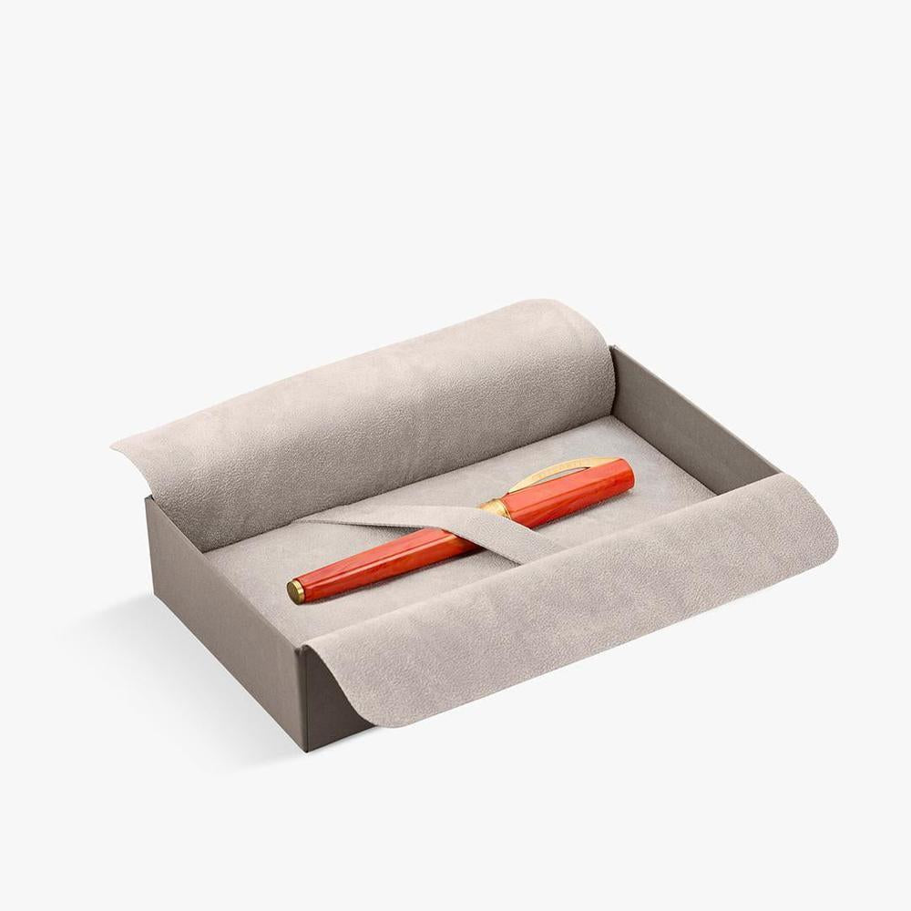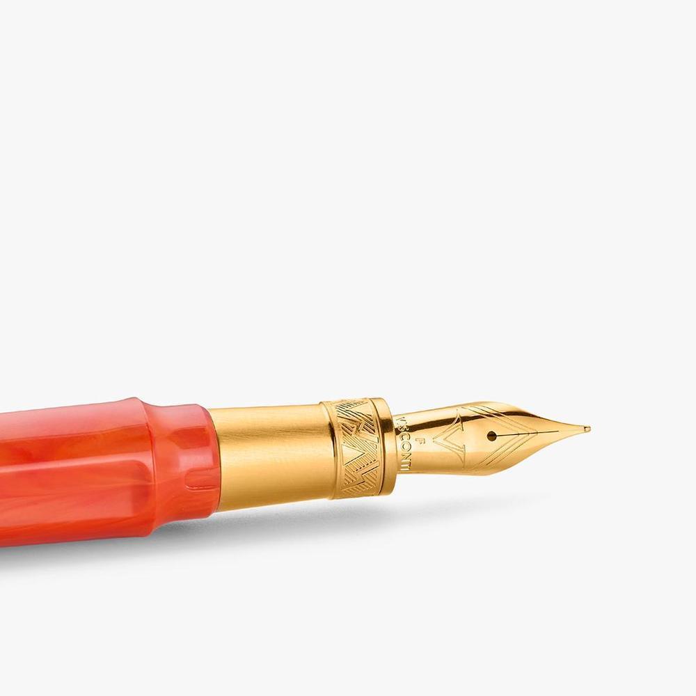 Demeter fountain pen brings mythological elegance to your writing. Its vibrant orange resin body with golden swirls pairs beautifully with yellow gold-plated trims and a large steel nib. The magnetic twist-and-snap cap closure and signature spring-loaded clip ensure reliable performance, while engravings celebrating the Mirage Mythos collection add a touch of sophistication. Perfect for collectors and everyday writers alike.
